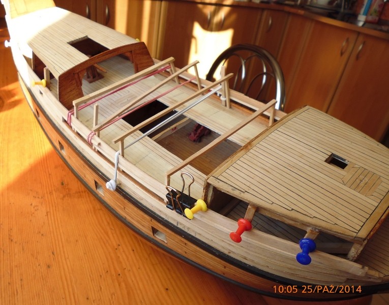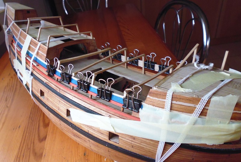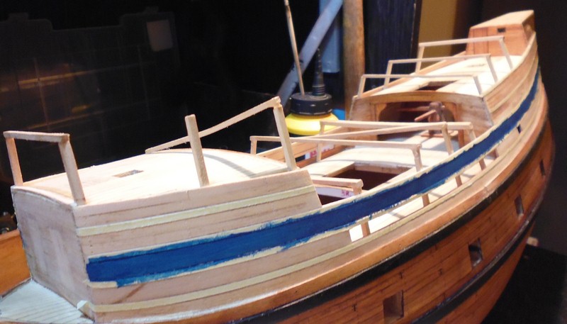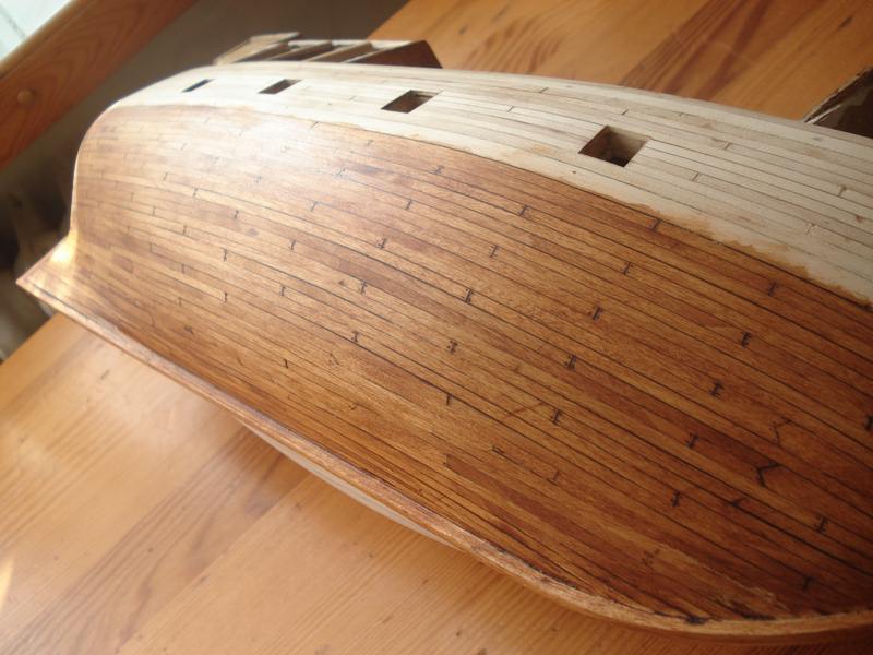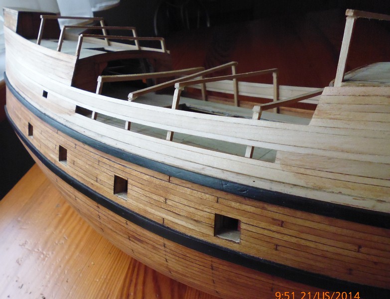 Dzięki panowie za wskazówki. Tymczasem trochę przybyło w nadburciu dziobowym tyle co na zdjęciach reszta spakowana, będzie zamontowana po dociągnięciu poszycia w górę(do pokładu kasztelu) i oczywiście wyszlifowaniu. Pozdr.