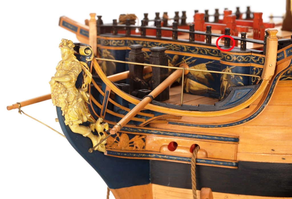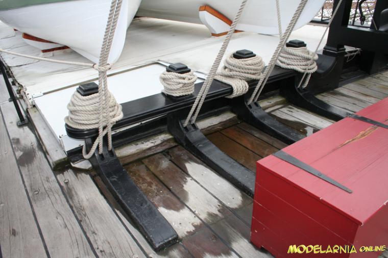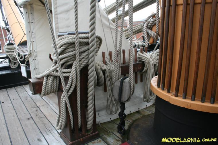 Mam nadzieję, że efekt do zaakceptowania. Teraz pytanie do znawców tematu olinowania. Czy liny biegnące z bukszprytu powinny przechodzić przez pachołki na dziobie? Na zdjęciu poniżej w owych pachołkach są rolki: