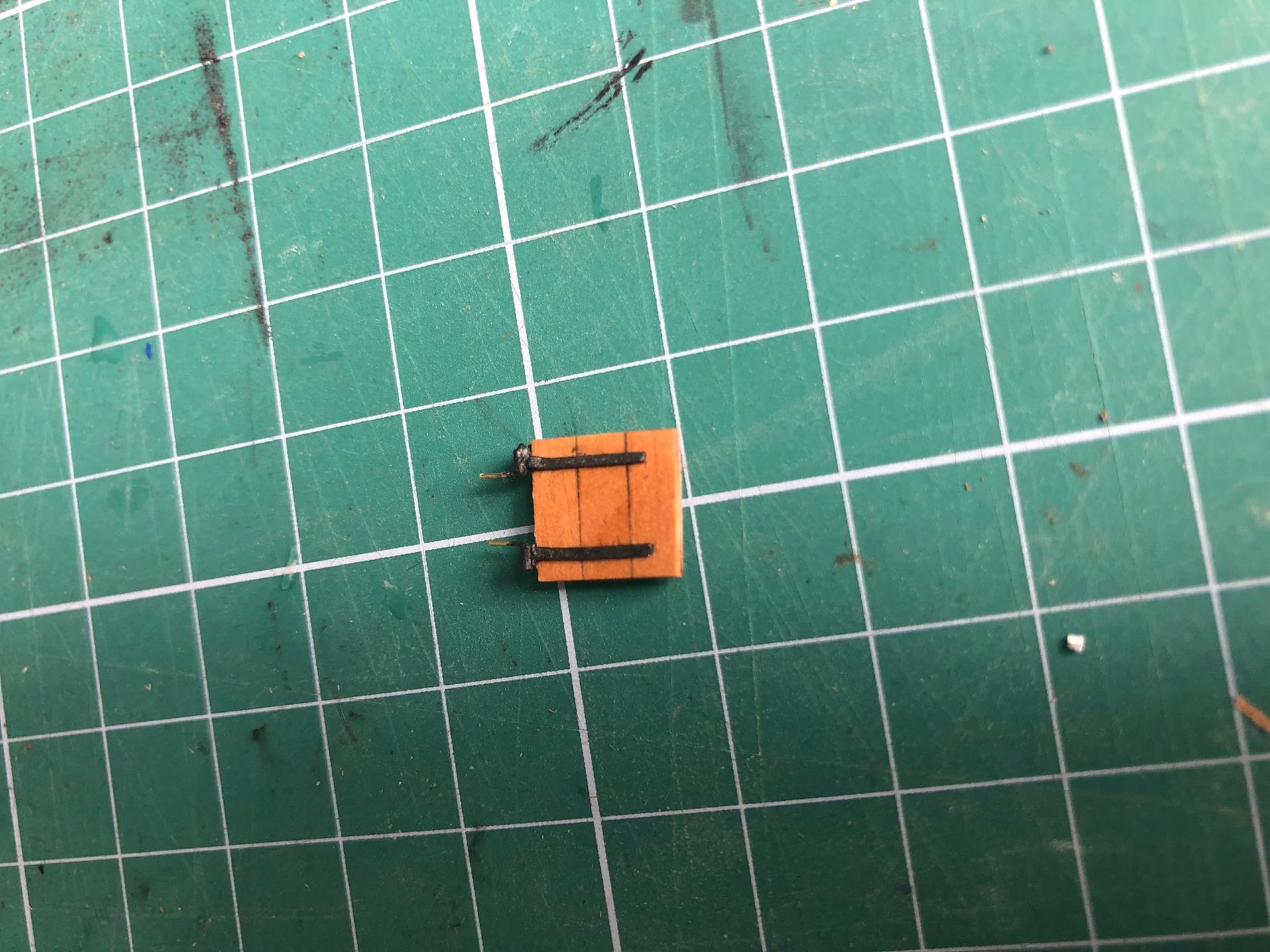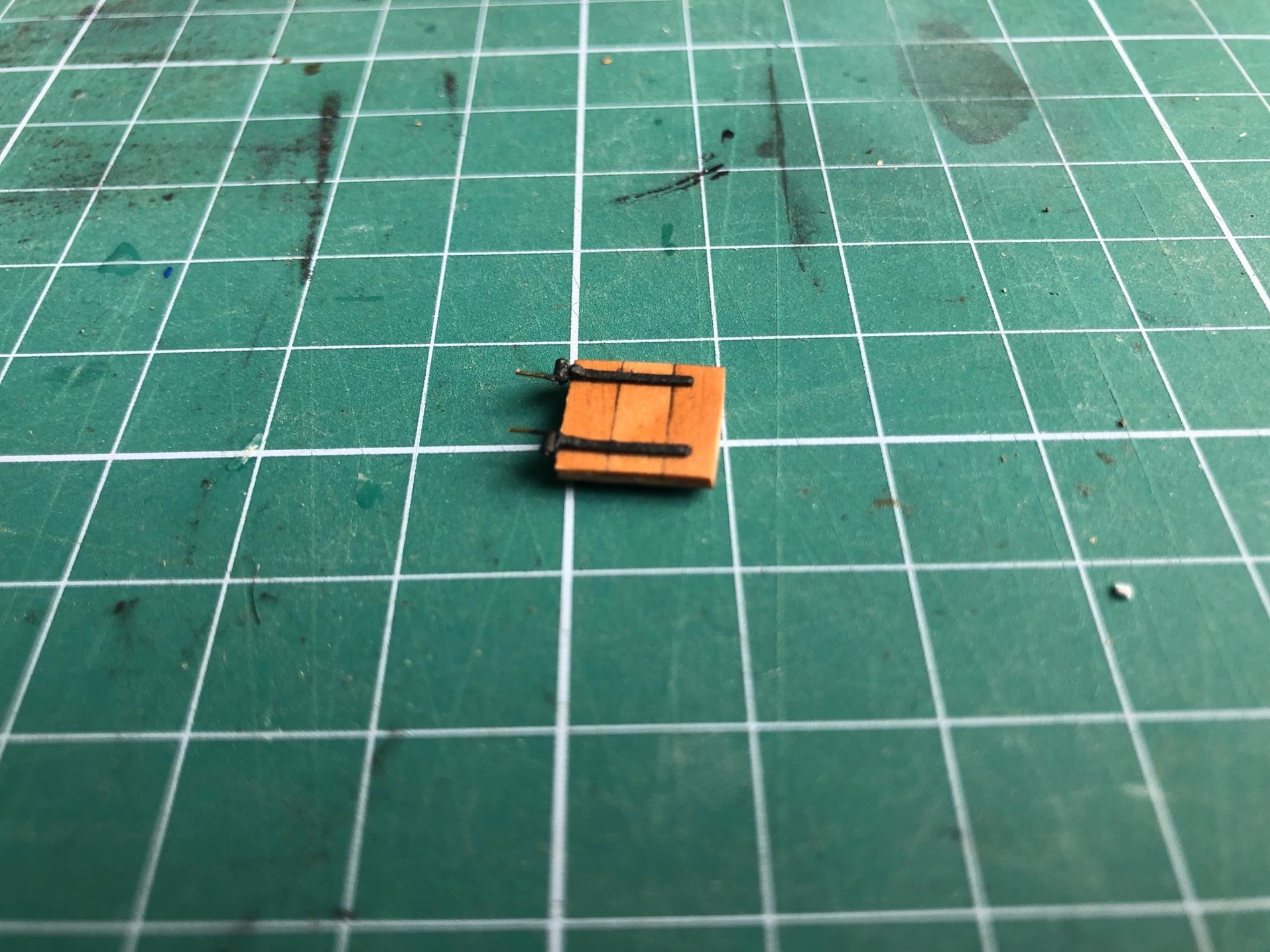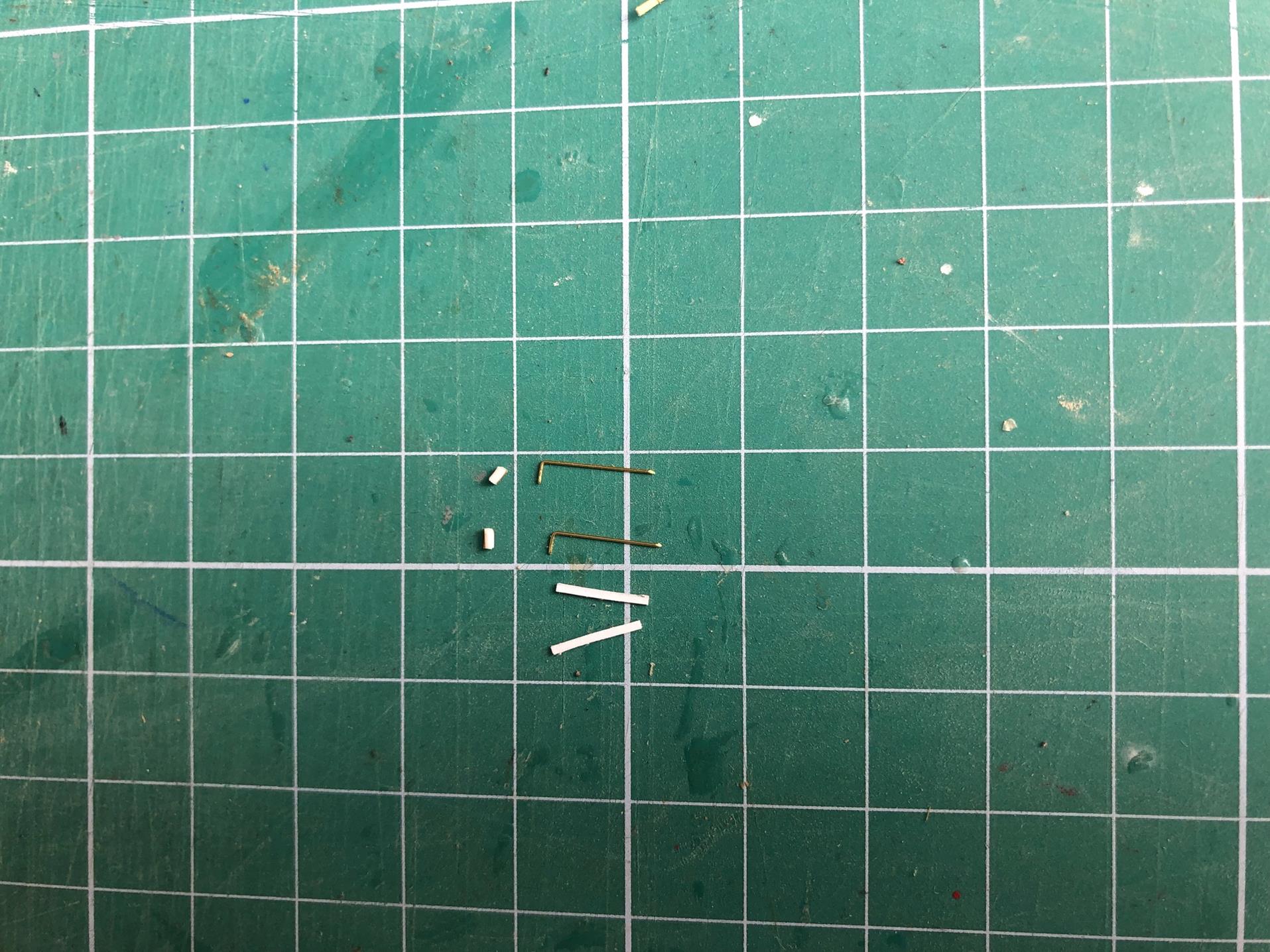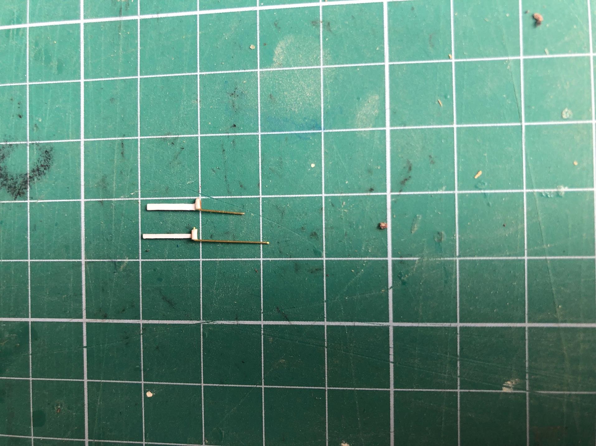 Zawiasy wykonuję sam, ponieważ zaproponowane przez Shipyard się nie nadają do niczego. Wykonuję je z izolacji drutu, papieru i drutu mosiężnego 0,3 mm. Całość malowane mieszanką farb humbrola - ta sama co armaty.