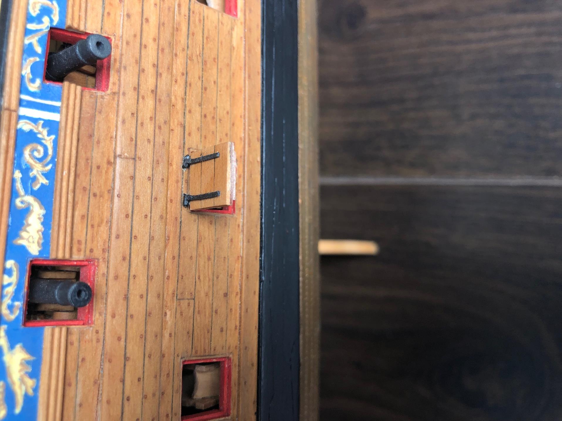 Zostało pomalować na czerwono wewnętrzną część klap i dodać oczka i liny po obu stronach.