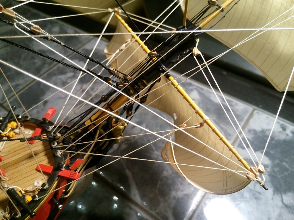 Trzecie piętro żagli rejowych zrobiony - linek coraz więcej...