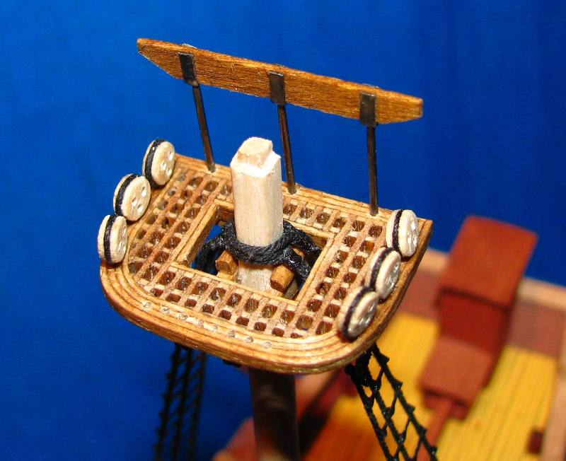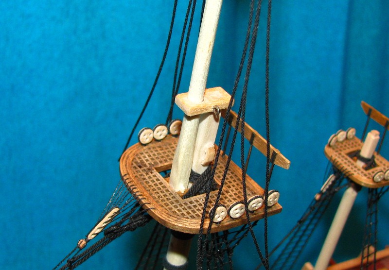 Węzłów wblinkowych nie zrobiłem z prostej przyczyny, o której Romek wspomniał - nie będą widoczne bez uzbrojenia oka w lupę. A po zakończeniu Bounty w planach jest budowa innej jednostki, w fornirze i innej skali - a efekty ...hmmm ... w swoim czasie.
