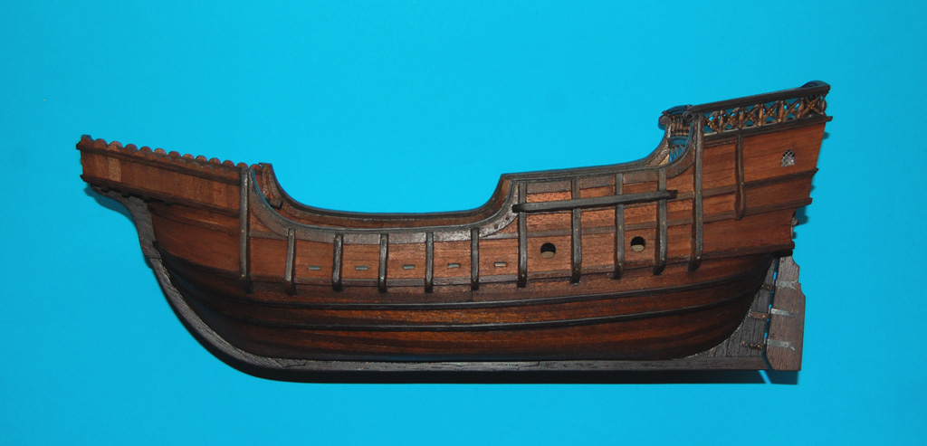 Rok tu nie zaglądałem, bo tak naprawdę niewiele się zmieniło, jedynie pobejcowałem poszycie bejcą spirytusową palisander, a poniżej linii wodnej lakierobejcą Simensa orzech - tym samym kolorem, którym nasycałem detale z kartonowych biletów. Po nałożeniu lakierobejcy wycierałem (wcierałem) szmatką.