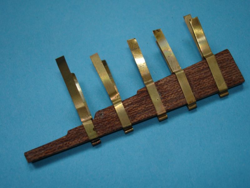 Witam w andrzejkową noc. Wieczór i część nocy spędziłem na produkcji jufersów i na przygotowaniu ich do montażu w ławach. Jest ich dość sporo ( ok. 200szt.). Zabrałem się za tą żmudną robotę, gdyż w pracach przy "vitku" zrobiłem małą przerwę. W przyszłym tygodniu chciałbym zabrać się za zdobienie galerii rufowej i wykonać furty dział. Oczywiście większa ich część będzie zamknięta. Gdy już zakończę prace przy kadłubie, będę montował ławy, wraz z jufersami. Mam nadzieję, że wystarczy mi weny...