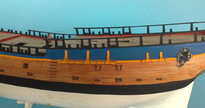 Ps. Na modelu przybyły jeszcze słupki pod falkonety, kotbelki i takie dodatkowe belki ( chyba do podnoszenia kotwicy na ławę wantową ).Zdjęcia całości - przy okazji :)