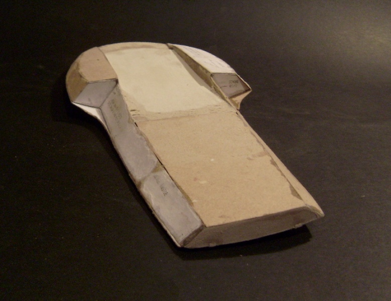 Kadłub długości 32cm z tektury będzie oklejony paskami forniru szerokości 3 mm. Całość planuję naszpikować gwoździami mosiężnymi.