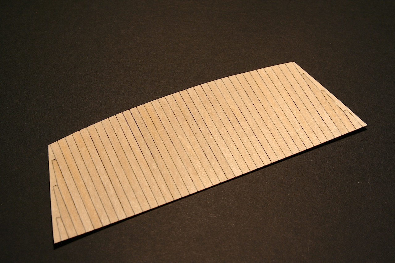 W trakcie wstępnego mocowania poszycia uwidocznił się drobny błąd w projekcie. W centralnym miejscu jednej z ambrazur jest widoczna wręga, którą trzeba będzie wyciąć. Ten błąd zauważyłem również w relacji Doris, więc nie jest to tylko moje niedopatrzenie