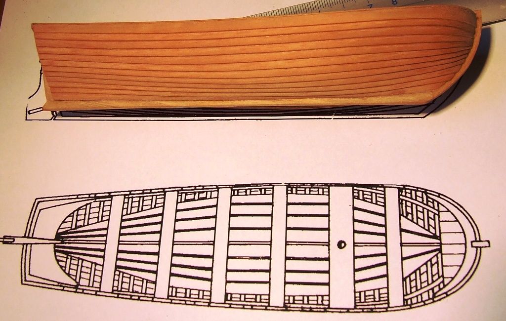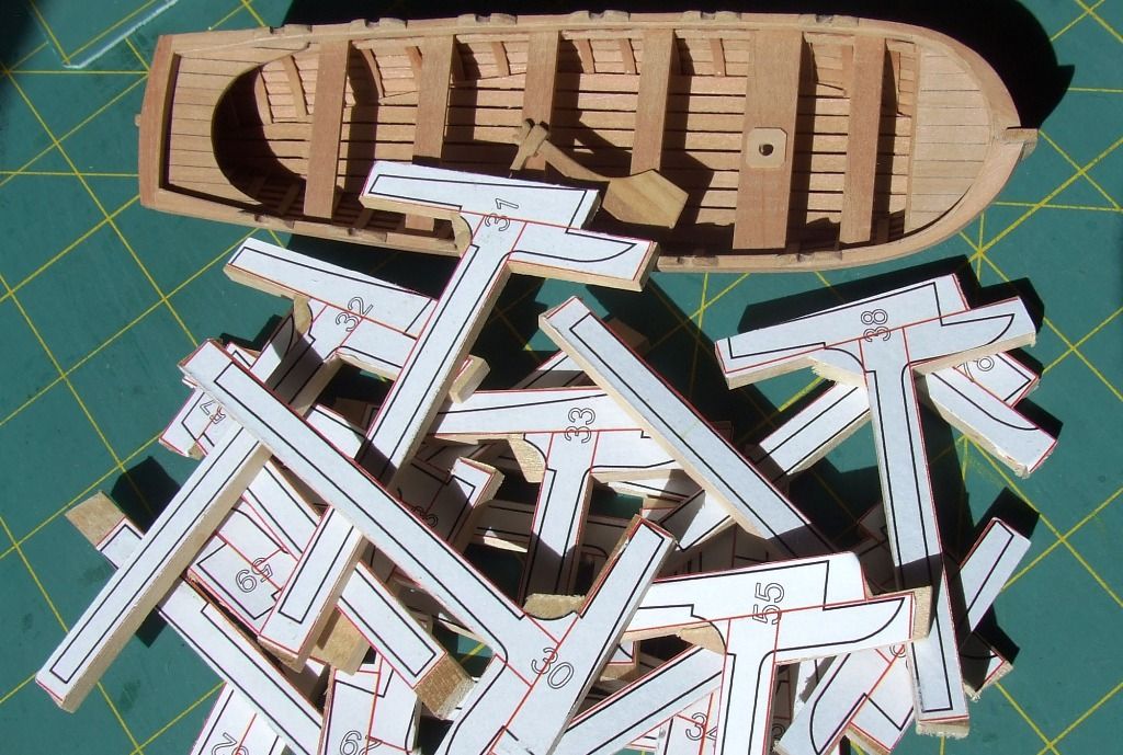 Druga "półszalupa". Czyli szalupa w przekroju do przekroju modelu. Ta ma 31szt. 1 mm wręg z forniru.