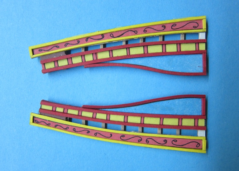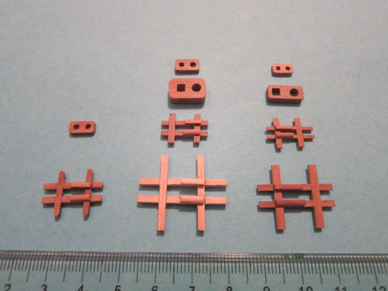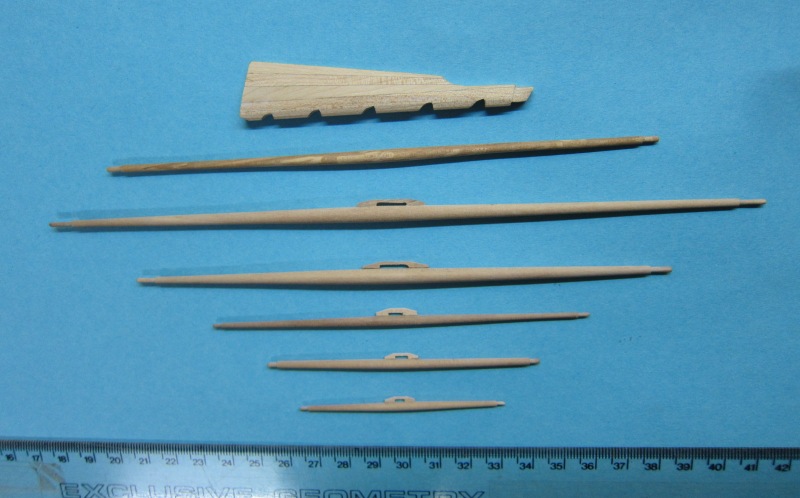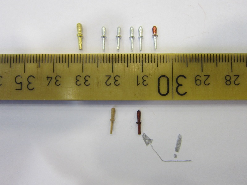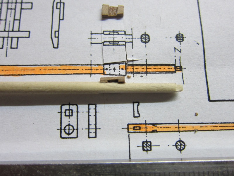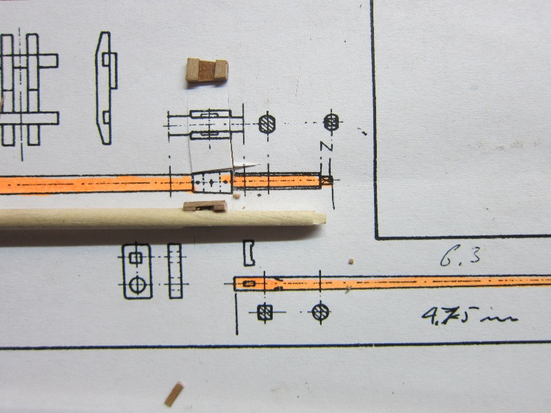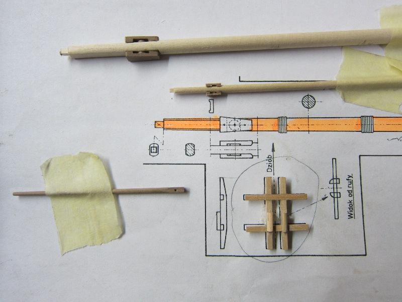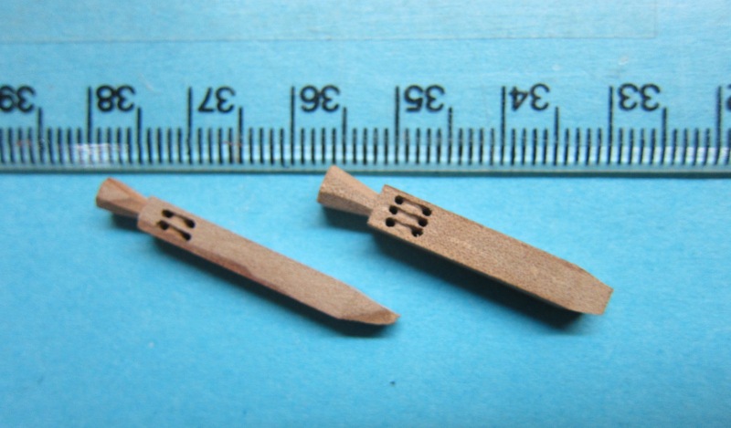 - Nagle kupione nie nadają się. Po obtoczeniu iglakiem są do zaakceptowania. Postanowiłem spróbować, wielokrotnie proponowanego, wykonania samodzielnego. I tak, z drewnianych końcówek po toczeniu masztów wykonałem, przy pomocy wiertarki i iglaków kilka kołeczków z gruszy. Po pomalowaniu mazakiem uznałem, że można je zastosować. Czeka mnie więc kilka godz. zegarmistrzowskiej zabawy, ale chyba warto.
