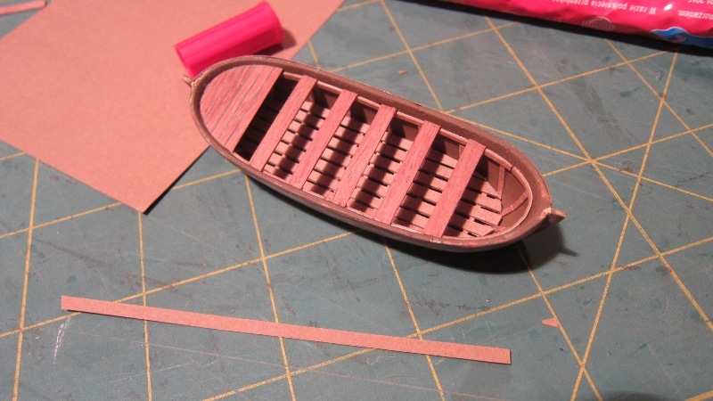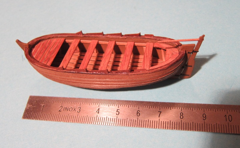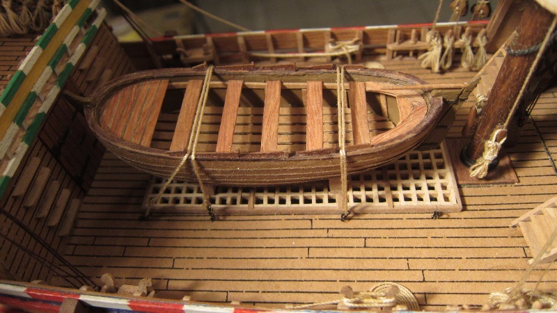 dalsze prace przy żaglowcu. Nitki powiązałem i pobuchtowałem. Kolej na szalupę.
