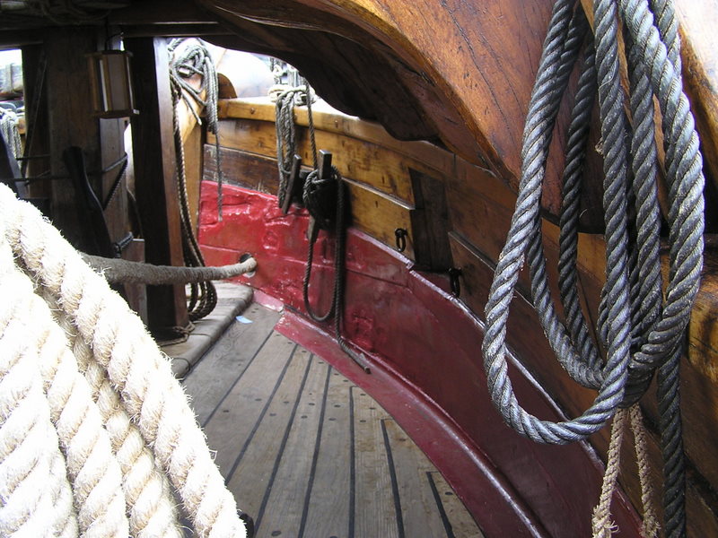 Pora na drobną aktualizację tematu. Za namową Jerrego postanowiłem, że jednak spróbuję zakołkować waterwaye. Przynajmniej częściowo, gdyż krawędzie pokładów zostaną jeszcze zakryte przez wewnętrzne poszycie burt i waterwaye się nieco zwężą ( poza pokładem dziobowym). W międzyczasie zrobiłem też miejsce pracy sternika, poskładałem szkielet do kupy i wyszło coś, co zaczyna przypominać galeon :-) Najpierw wszystko pospawałem CA, pilnując aby szkielet nie zwichrował się w ósemkę, a następnie wzmocniłem łączenia pattexem. By dotrzeć klejem we wszystkie zakamarki zrobiłem sobie przedłużkę na aplikator ze zużytego wkładu do długopisu. Sprawdza się znakomicie, jest elastyczna, a klej nie osadza się na ściankach i się nie zapycha. Model przybrał na rozmiarach więc, żeby móc go jakoś sensownie zaprezentować, zainwestowałem też w małe studio fotograficzne. Na początek roleta w kolorze błękitnym jako tło. O wiele milej się teraz fotografuje i ogląda swoje fotki :-) Będę jeszcze musiał rozwiązać problem oświetlenia i dokupić jakieś lampy. To już niebawem, a tymczasem fotki bez nich: