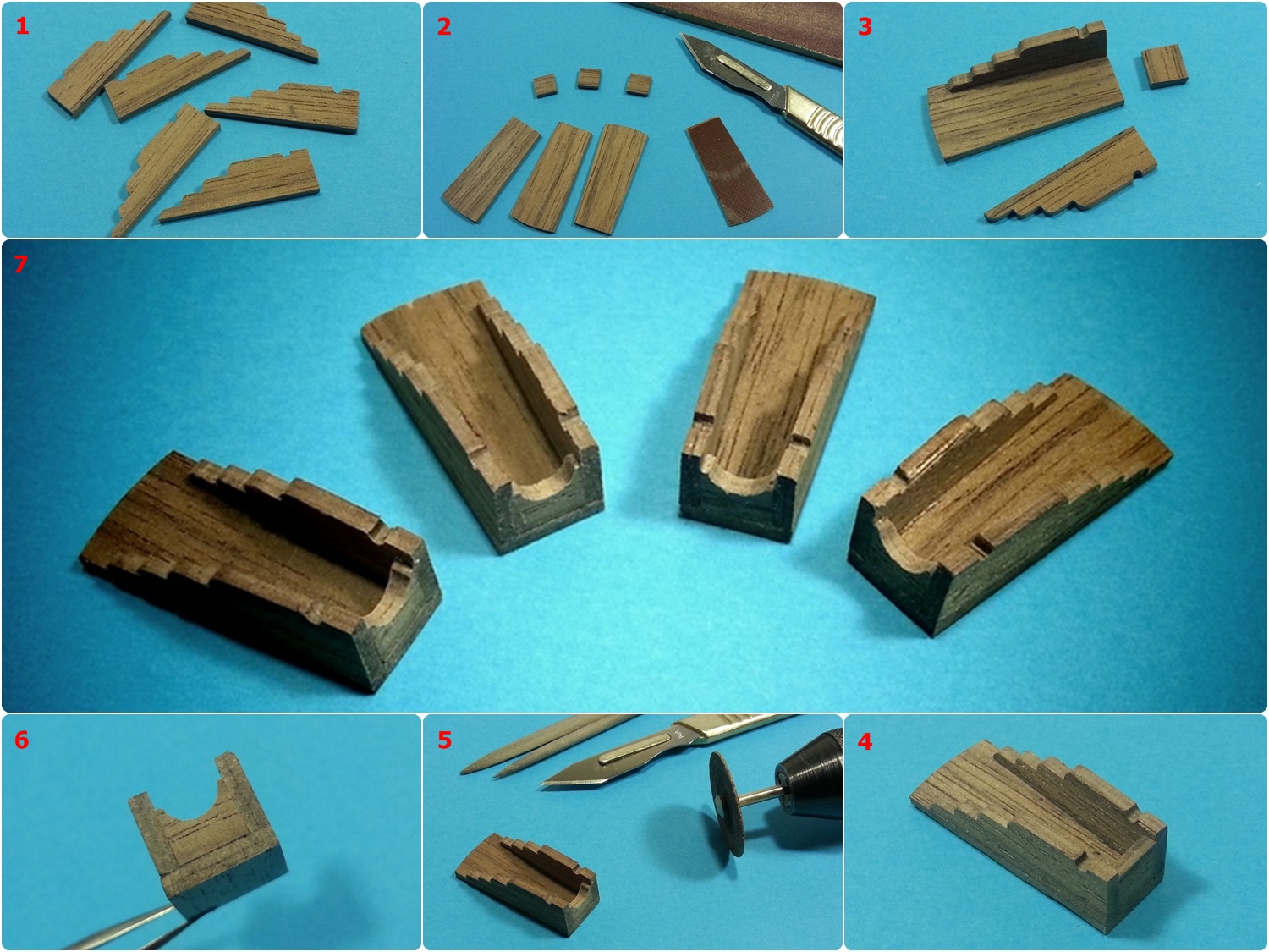 Witam. Czasu ostatnio miałem niewiele na dłubanie i udało mi się zrobić zaledwie cztery uproszczone lawety pod najcięższe, 36 funtowe działa. Będą bez kółek, podklejone kawałkiem listewki by miały odpowiednią wysokość. Ale to już przy montażu na modelu. Materiał to dwie warstwy forniru sklejone ze sobą. Użyte narzędzia i proces powstawania na fotkach poniżej.