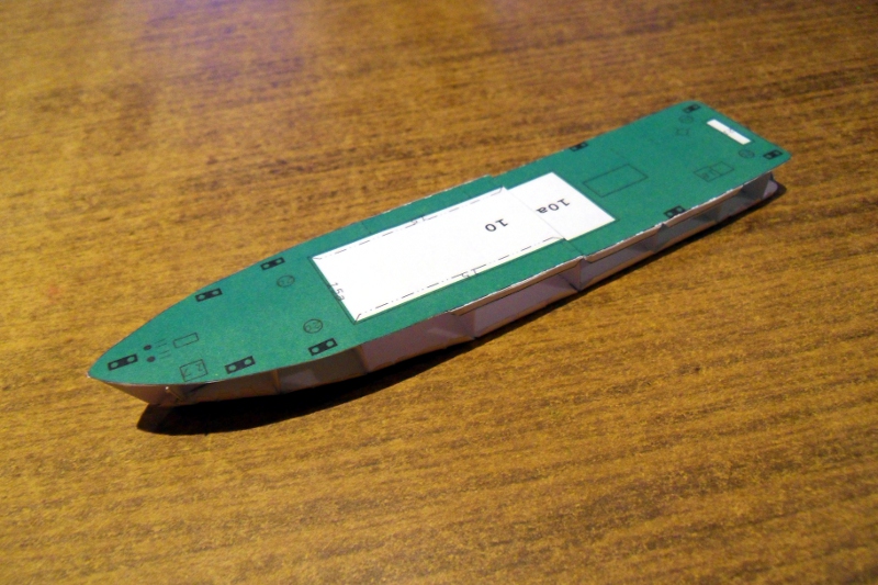Dziś kolejny mały kroczek, pokłady. Model składa się całkiem przyjemnie, po przyklejeniu pokładów, kadłub usztywnił się choć obawiałem się, że może być z tym problem.