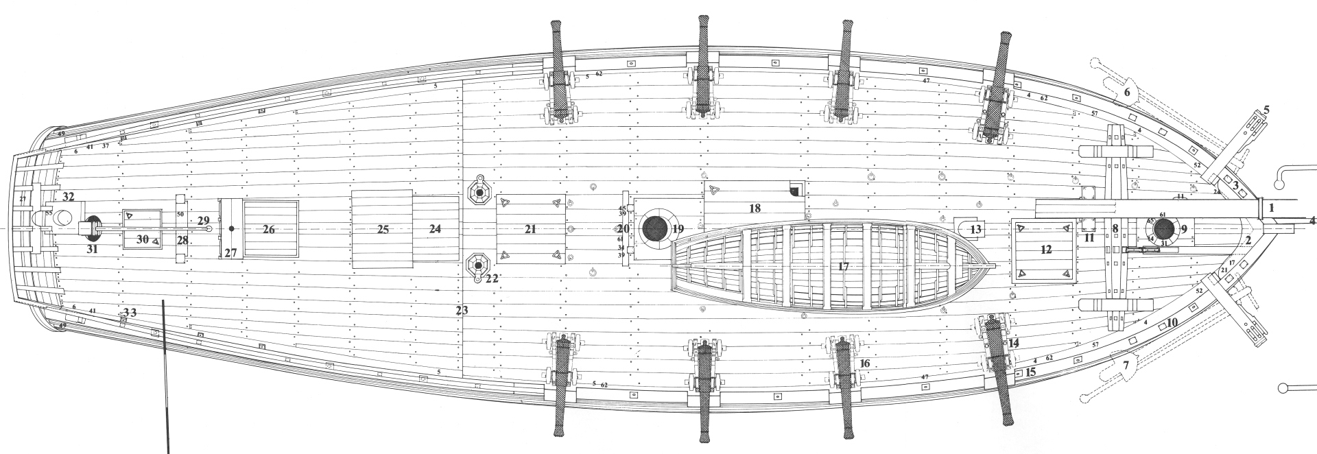 Kejsi! Dzięki, że zwróciłeś uwagę na skosy w różnych kierunkach. Wcześniej tego nie widziałem – popełniłem błąd (dobrze, że to tylko próbka). Załączam plan pokładu wydawnictwa Ancre, rzeczywiście układ kołkowania – skosy – są w jednym kierunku.