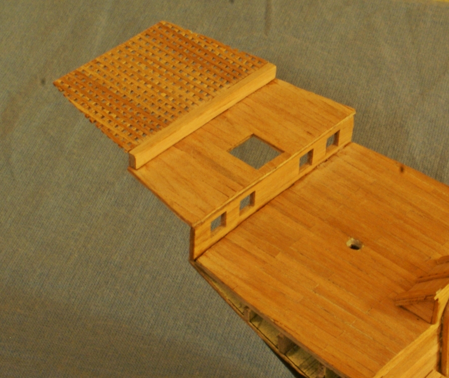 Witam, zamontowałem prowizorycznie pokłady rufowe (2-3 kropelki kleju). Teraz będzie można wszystko pomierzyć i wykonać nadburcia rufy