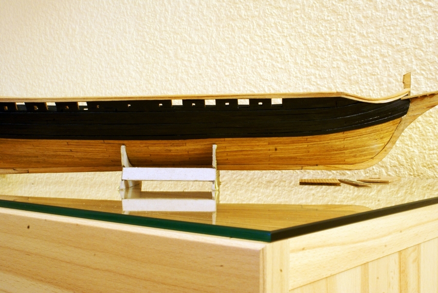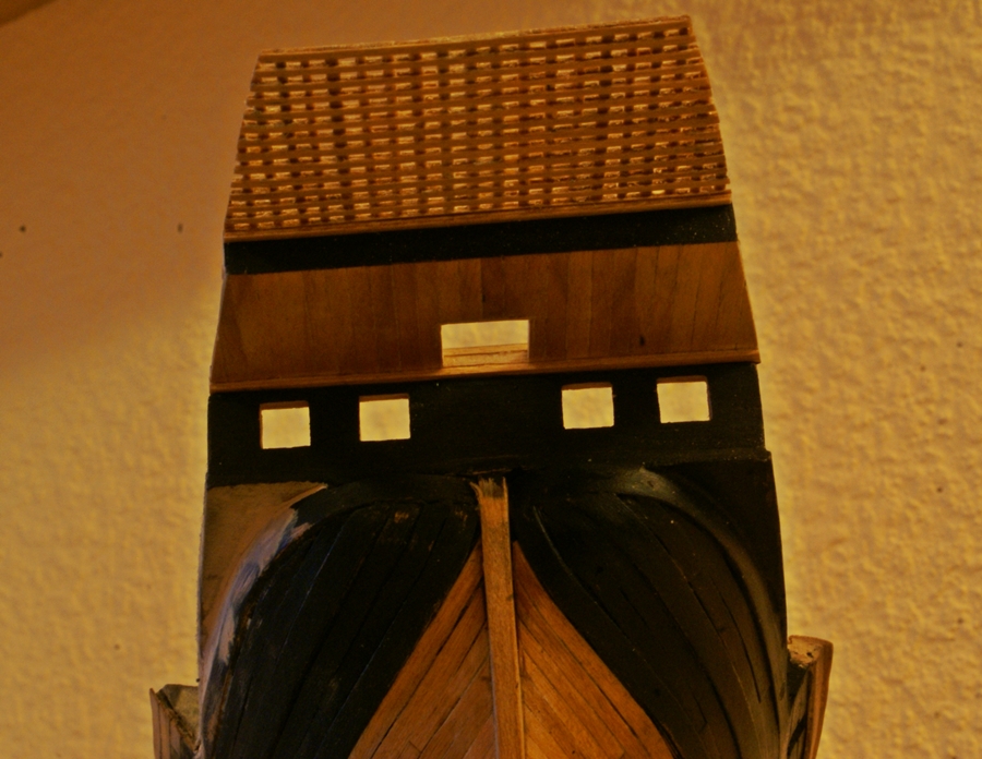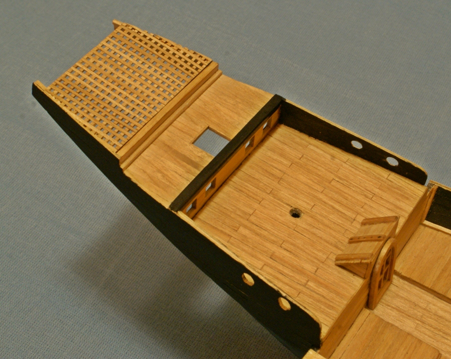 Witam, zamontowałem prowizorycznie pokłady rufowe (2-3 kropelki kleju). Teraz będzie można wszystko pomierzyć i wykonać nadburcia rufy