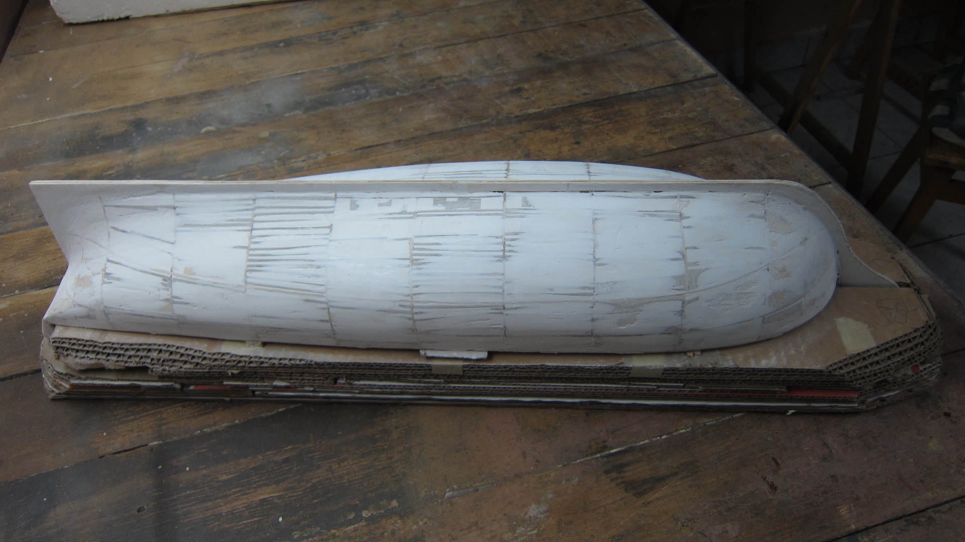 Z uwagi na "mieszany" styl wykonania, liczę na podpowiedzi Kolegów lepiej obeznanych z modelarską sztuką. Postanowiłem zmienić wygląd kadłuba z pierwotnego, zaproponowanego przez Fly Model, na wersję przebudowaną, współczesną, do której jest lepsza dokumentacja.