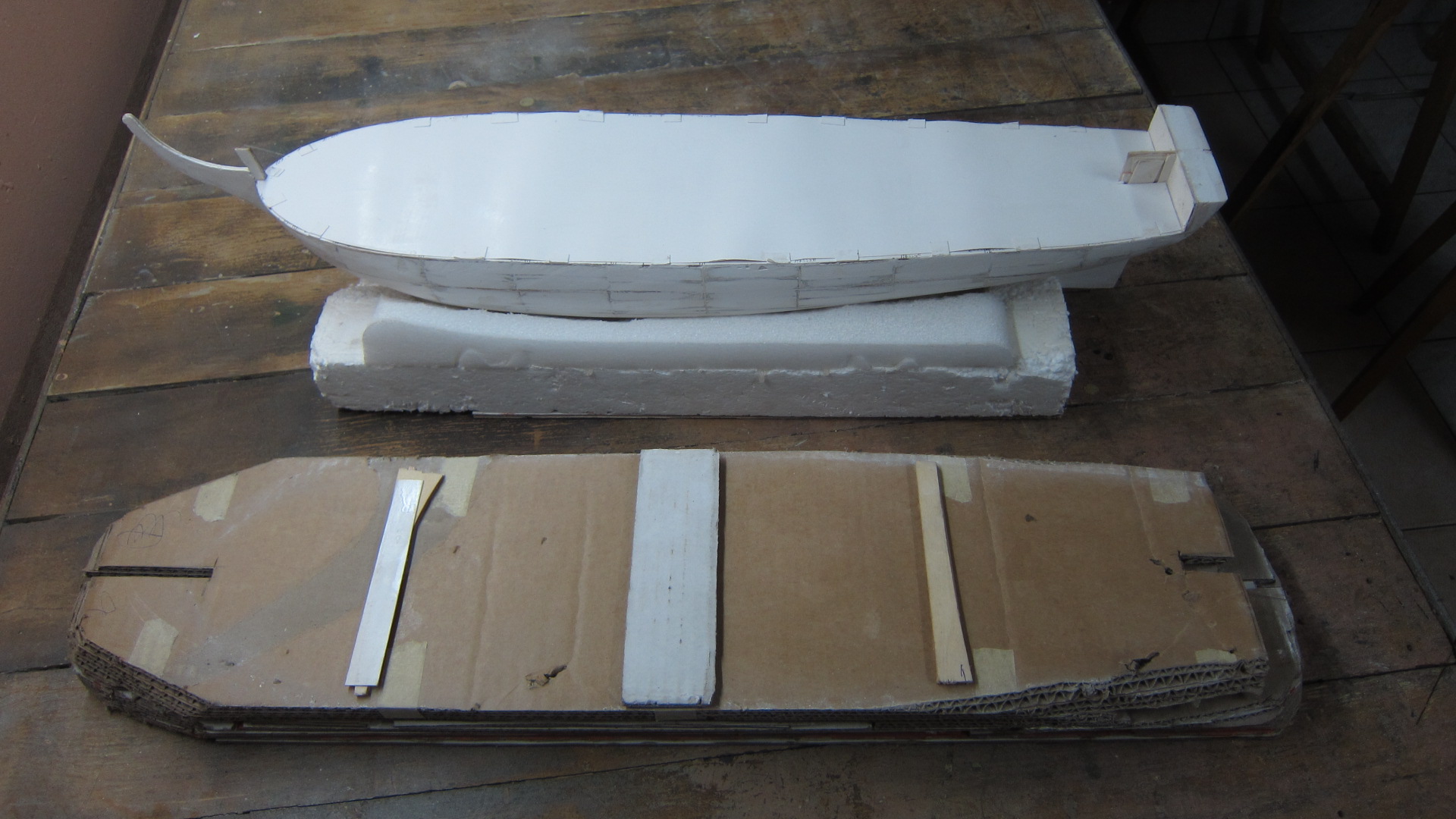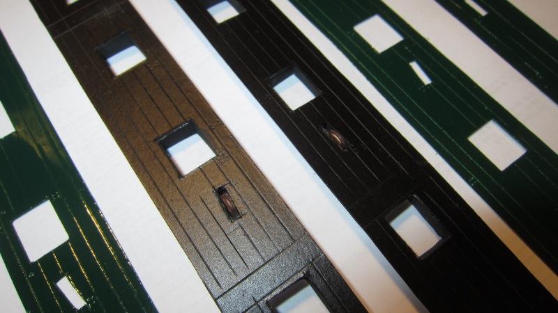 Dobudowałem burty, zapominając niestety o zostawieniu otwartych drzwi na kosz dziobowy. (W mojej wycinance były zamknięte). Teraz już ich nie otworzę, załoga musi wziąć na wstrzymanie!