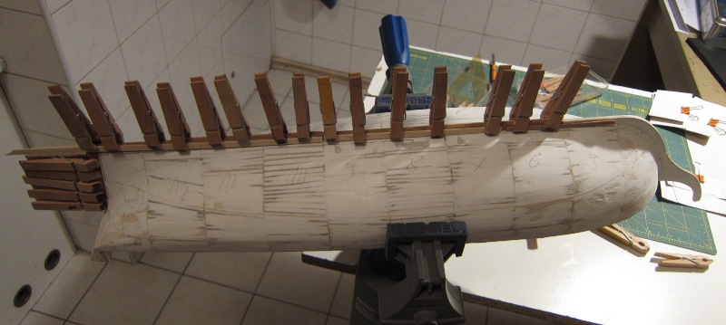 Tego pokładu nie będę zabudowywał, i tak nie będzie go widać. Z ambrazur będą wystawały tylko fragmenty luf. Myślę o wykonaniu jednej burty z zamkniętymi ambrazurami.