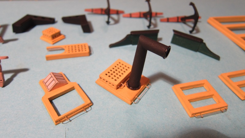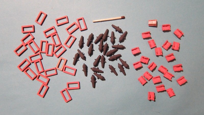 Ambrazury wycięte z zestawu pasowały do okienek całkiem nieźle. Trzeba było jednak mocno uważać, aby ich nie pomylić. Po przyklejeniu wymagały zewnetrznego retuszu.