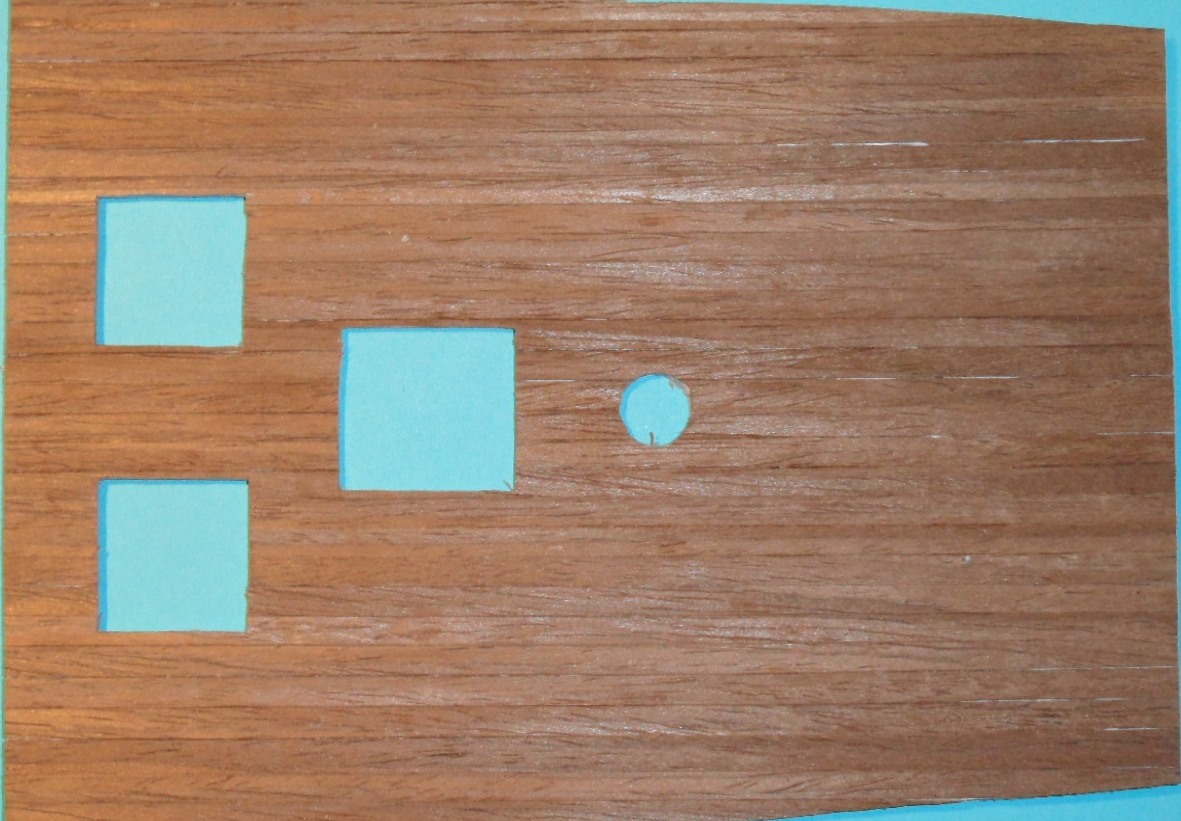 Uszczelnienie deskowania ładowni wykonałem metodą szeroko omawianą już na forum: tu listewki lipowe #2mm połączyłem w pakiety po 5 sztuk, okleiłem na dwóch krawędziach czarnym cienkim kartonem. Po wyschnięciu przykleiłem do kartonu #2mm. Ściany ładowni oklejone fornirem bukowym 0,6mm.