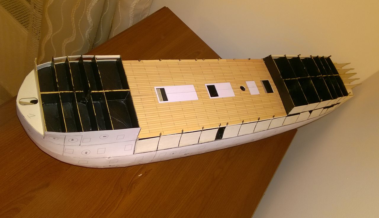 Laserowo wycięty szkielet zaopatrzyłem w listewkowe podposzycie, tak jak przy moim Bismarcku: