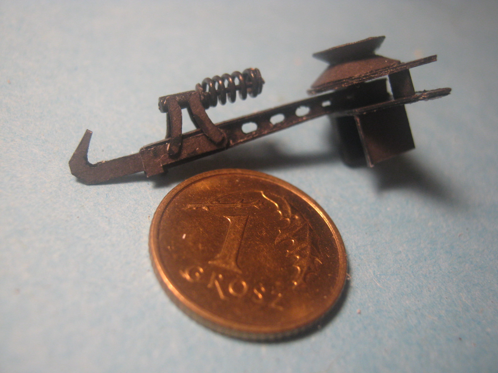 Zrobiłem też dźwig. Drut telefoniczny 0,5mm spawany super glue.