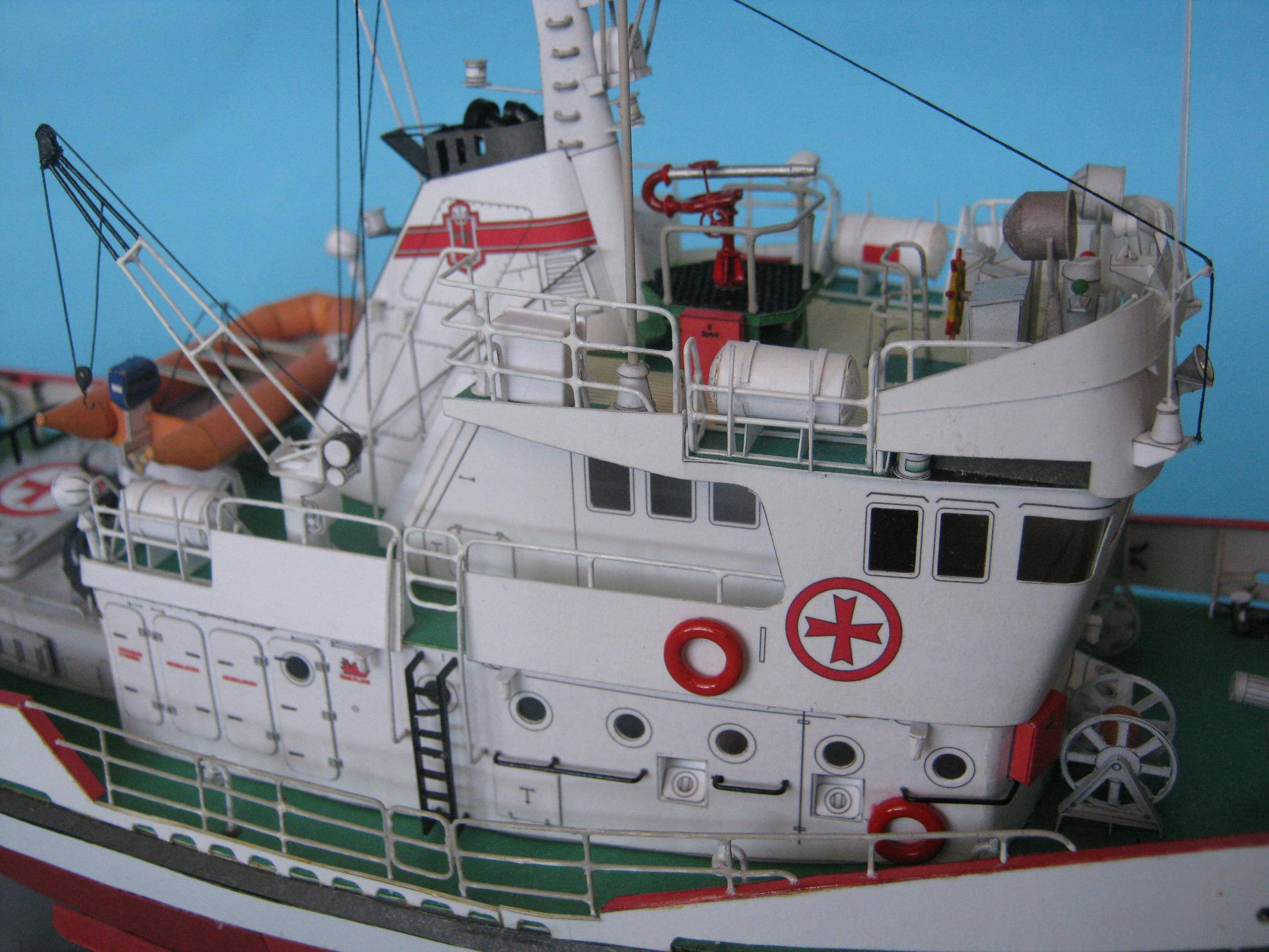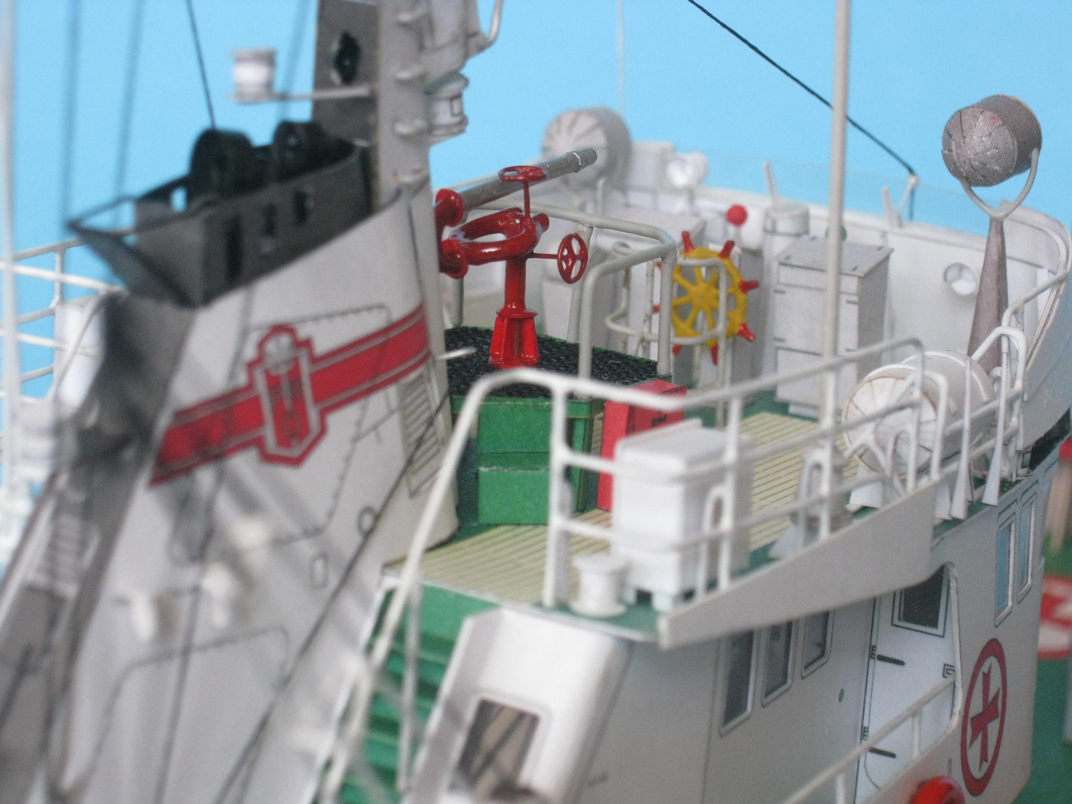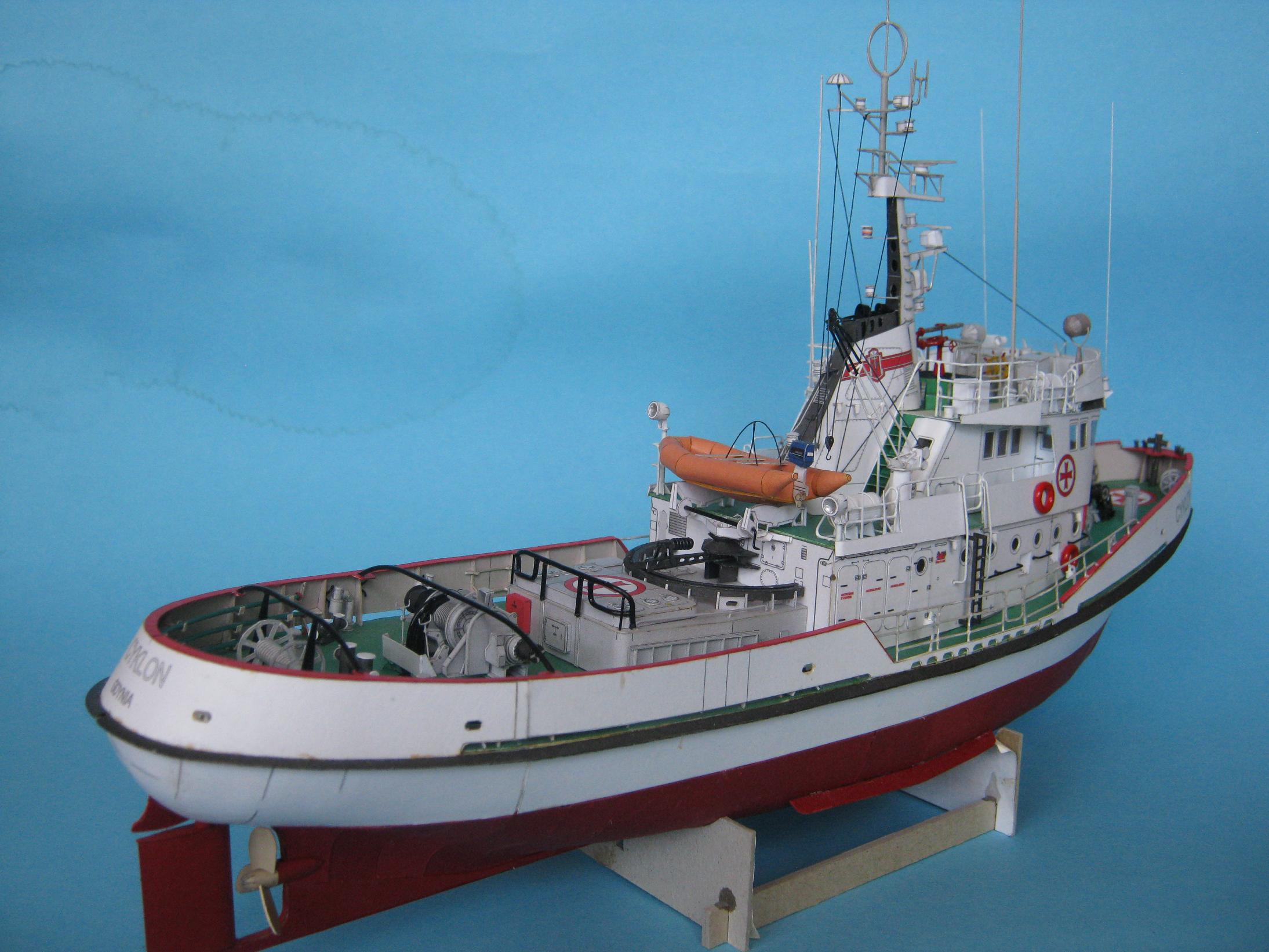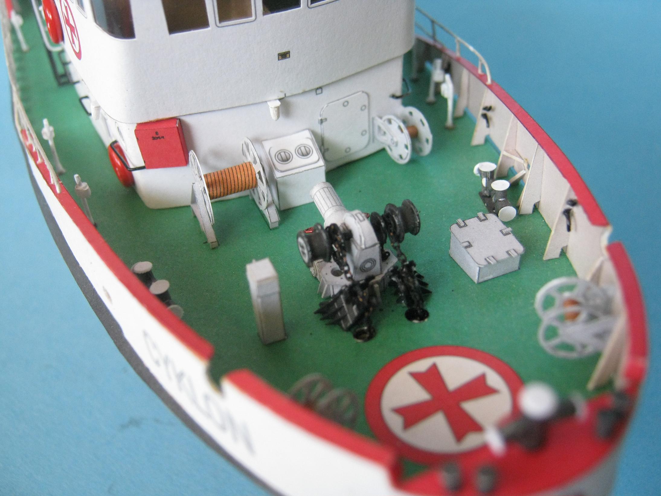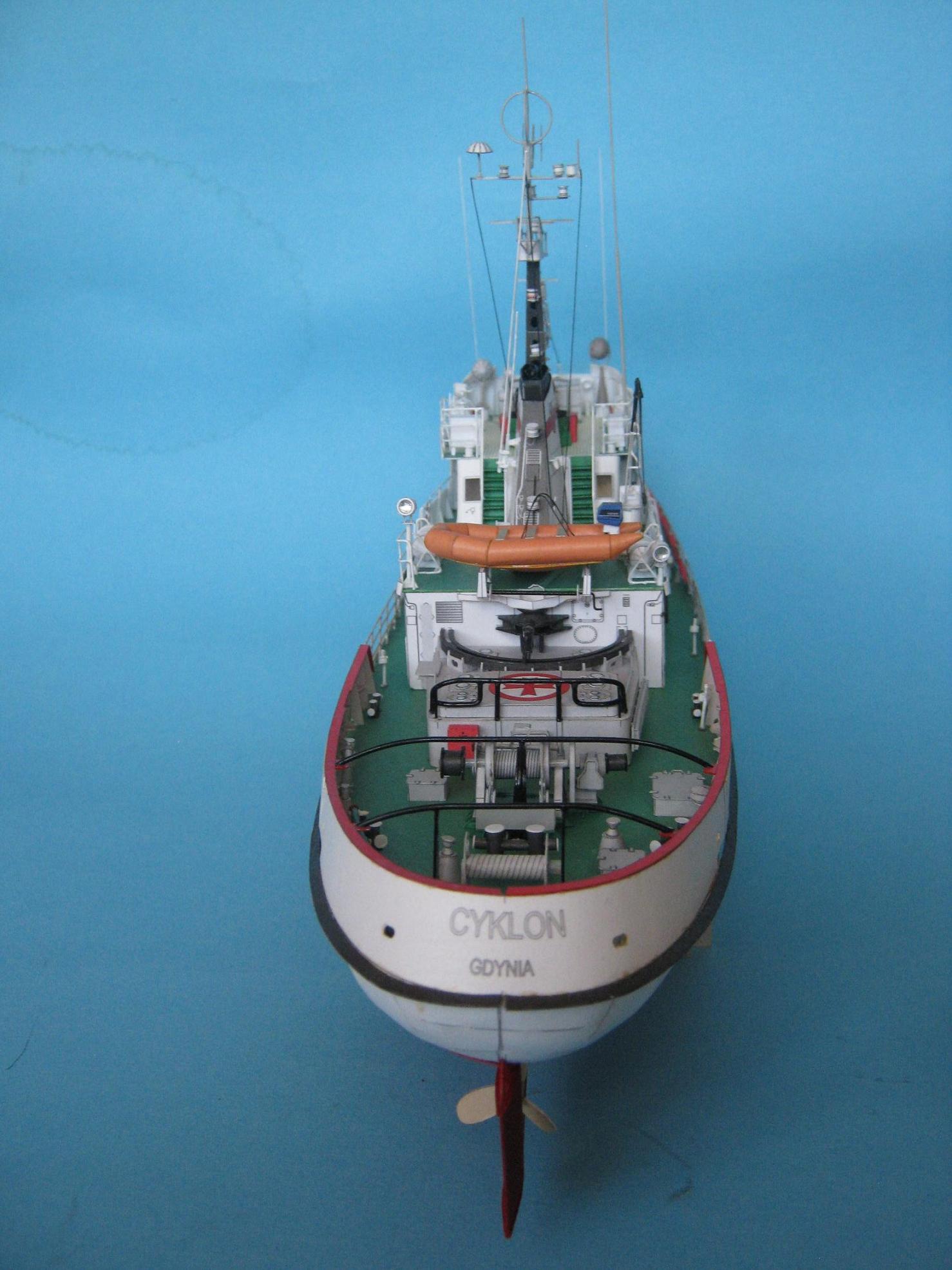 Przemek. Powstał piękny modelik. Zważywszy na wielkość porównywalną do łupinki od orzecha, te wady poszycia o których piszesz nie są dramatyczne. Moim zdaniem bardzo zgrabnie wyprofilowałeś zwłaszcza rufę. Szkoda, że jeszcze bardziej nie uplastyczniłeś modelu np. nawijając liny lub przewody na kołowroty, wycinając otwory wentylacyjne i wykonując w nich żaluzje. Niemniej jednak i bez tych kilku detali Cyklonek wygląda świetnie. Skoro jednak pokazałeś, że potrafisz bawić się z kartonem, to w przyszłym Twoim modelu nie będzie już tak łatwo i będziesz musiał coś dodać od siebie; sam sobie podniosłeś poprzeczkę to teraz cierp