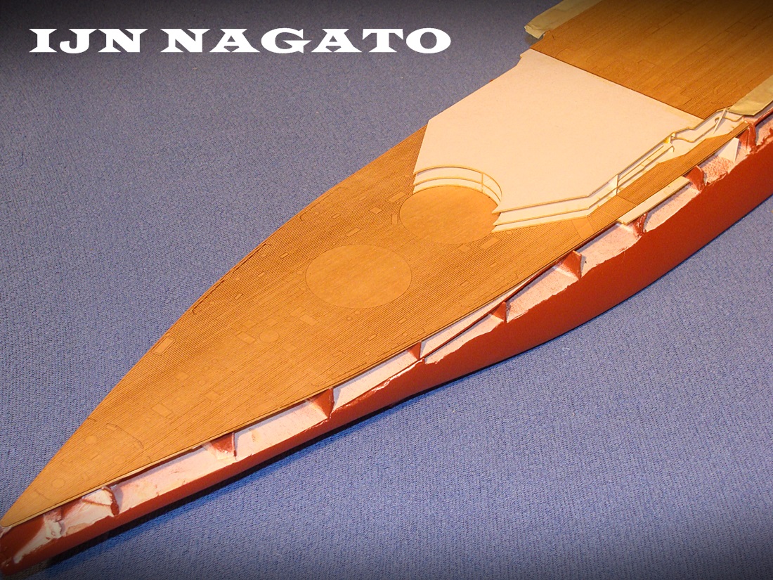 Nie jestem wprawdzie specjalistą od drewna, ale ze skromnego własnego doświadczenia do barwienia zalecałbym zwykłą bejcę. Problem z bejcą jest taki, że kolor drewna uzyskany po barwieniu będzie zależny zarówno od barwy samego drewna jak i kolorystyki samej bejcy. Z załączonych zdjęć trudno zorientować się na jakim drewnie wygrawerowane zostały pokłady do Nagato. W związku z tym trudno też odpowiedzieć, czy to drewno będzie chłonąć bejcę. Niektóre gatunki drewna słabo poddają się bejcowaniu. Dlatego, jeśli już rozpoczniesz proces bejcowania proponuję zacząć od tego fragmentu pokładu, który będzie przykryty nadbudówkami.