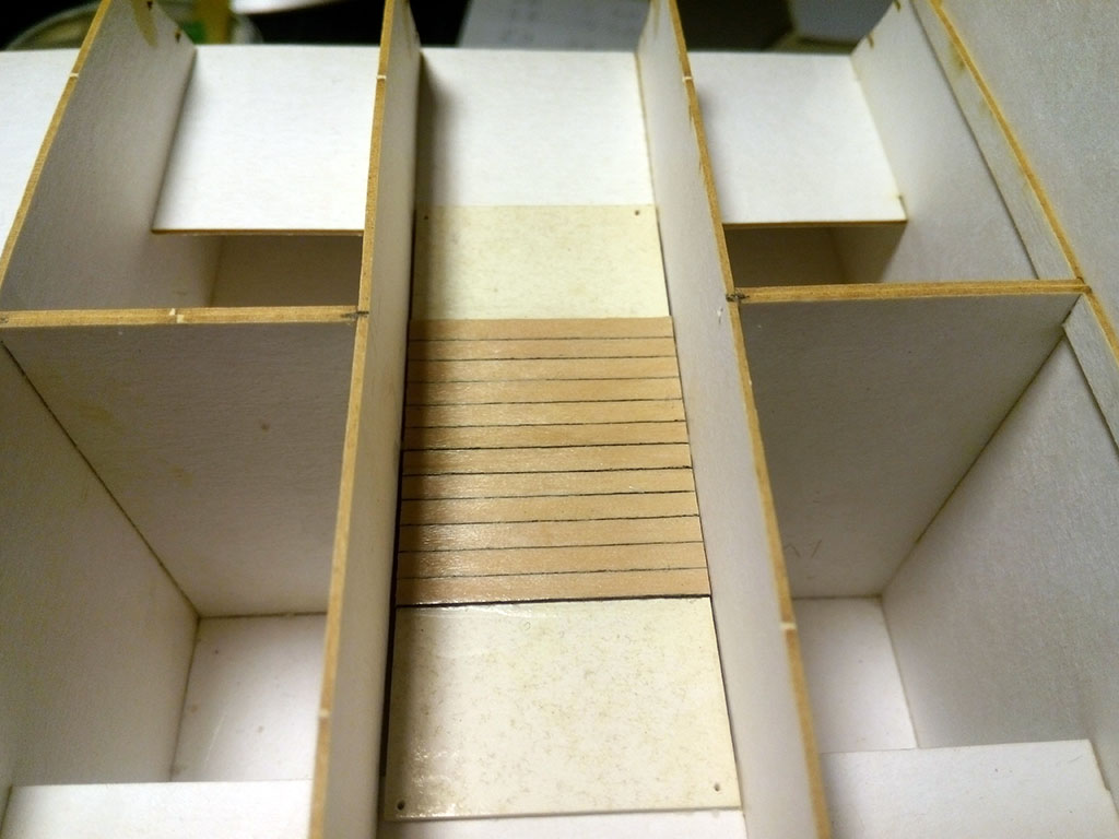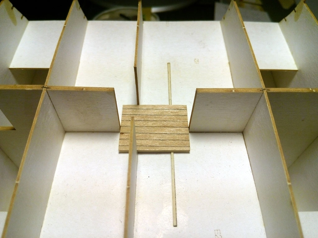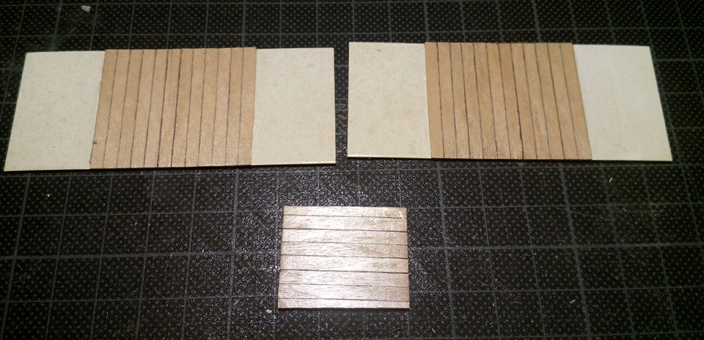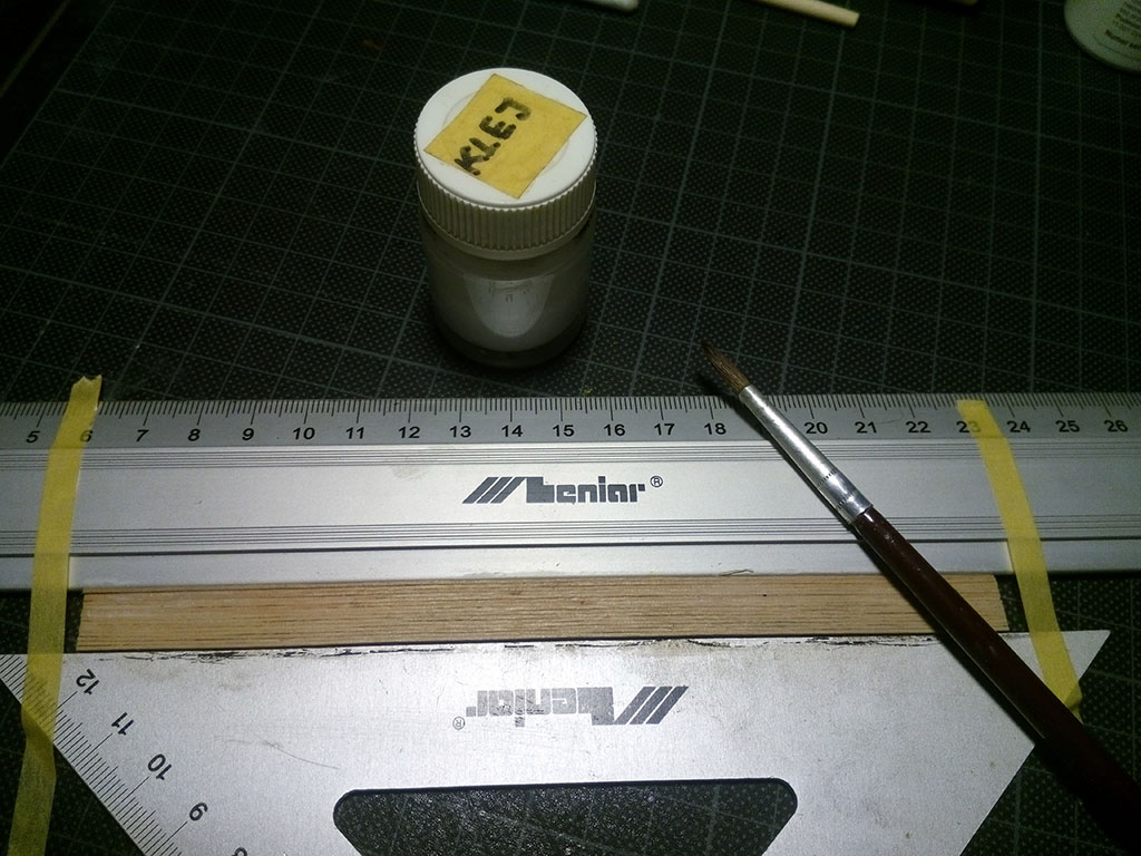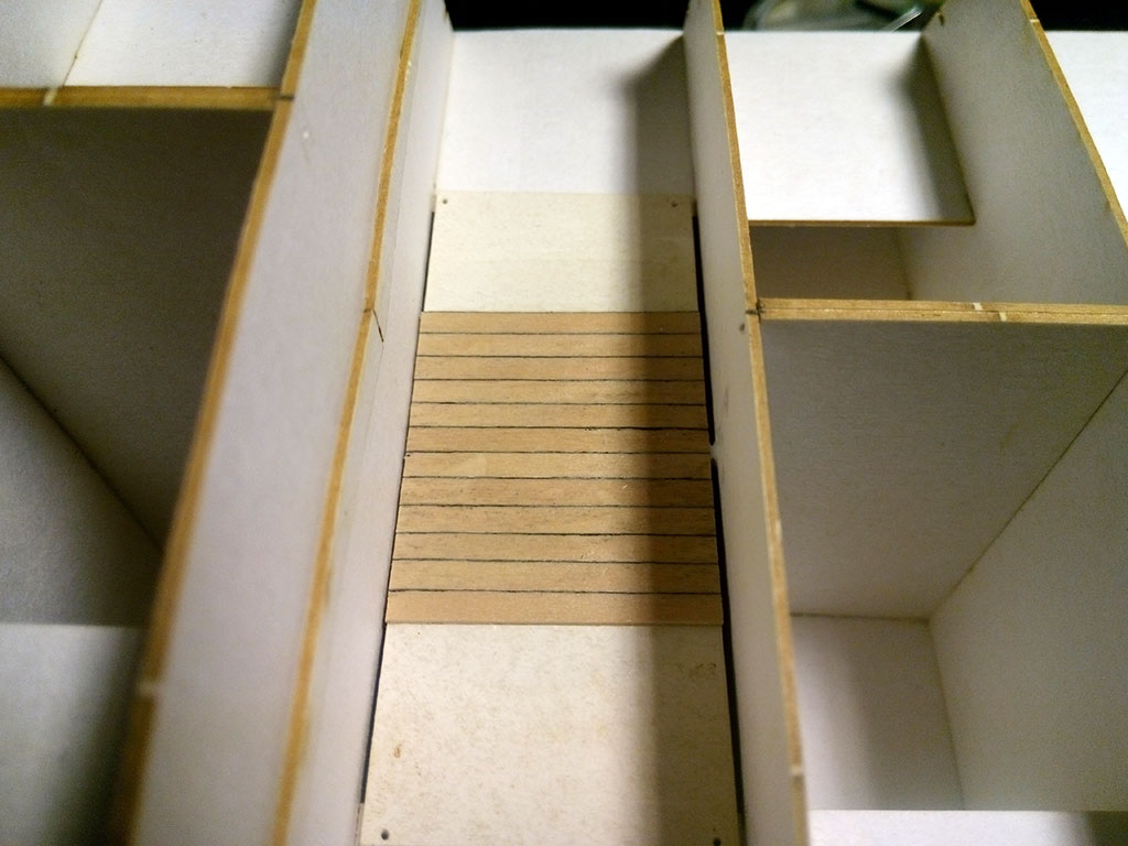 Kolej na 3 małe pokłady, które będą widoczne w otwartych zejściówkach i pokład na dziobie. Do wycinania listewek przygotowałem sobie mój stary i sprawdzony przyrządzik - nawet w relacji @Doris jest jego zdjęcie z mojej relacji z Lexingtona.