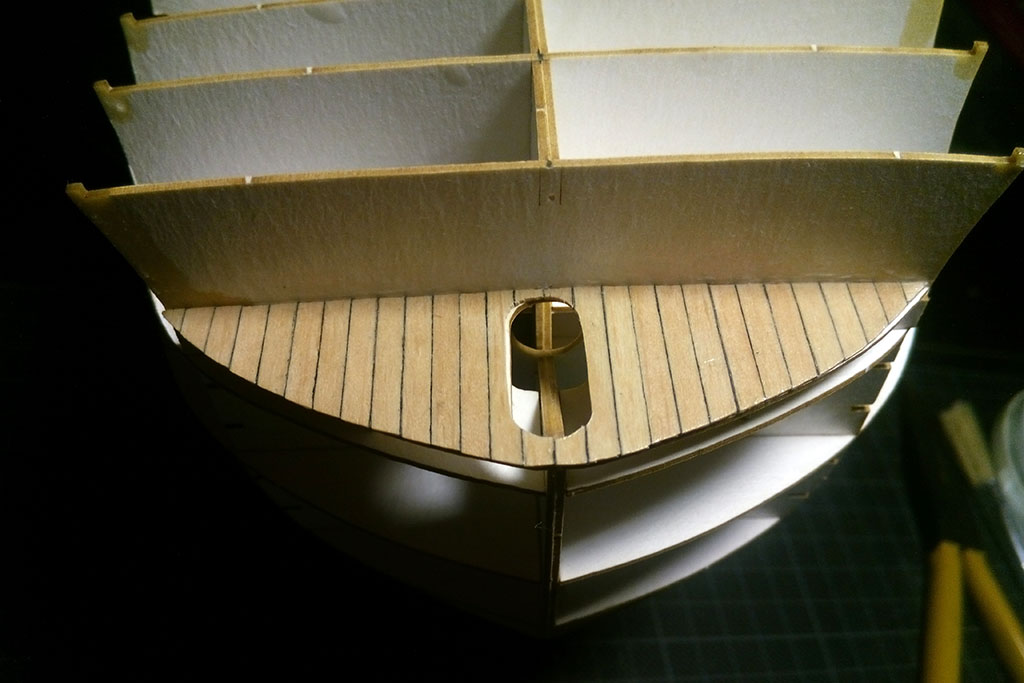 W pierwszym wydaniu Victorego nie ma rozrysowanego podziału desek na pokładzie.Dlatego będę wykonywał je zgodnie z tym jak to wykonał Tomek Aleksiński i narysował Sławek Kromer: