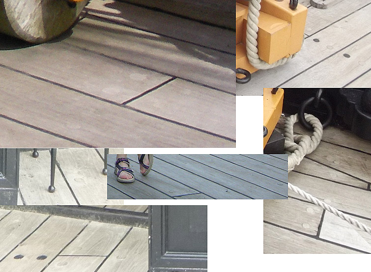 Wiedziony własną ciekawością pobuszowałem w necie ... i.. na pokładzie V. stojącego w Portsmouth widać kołkowanie .. ale jest dobrze spasowane zarówno kolorem jak i dopasowaniem kołka do otworu, więc na zdjęciach z ciut dalszej odległości onego nie widać, ale na zbliżeniach się pojawia: