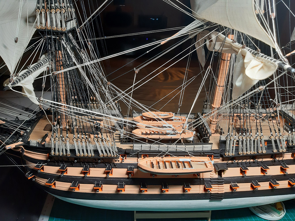 Zrobię na pewno windy na rejach (Tackle pendant) i będzie na windach podniesiona największa szalupa Wiktorka