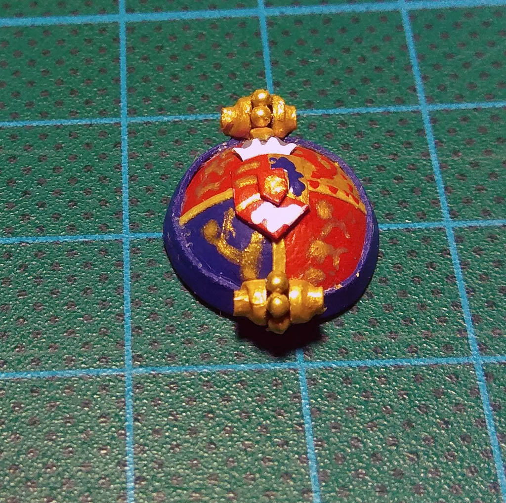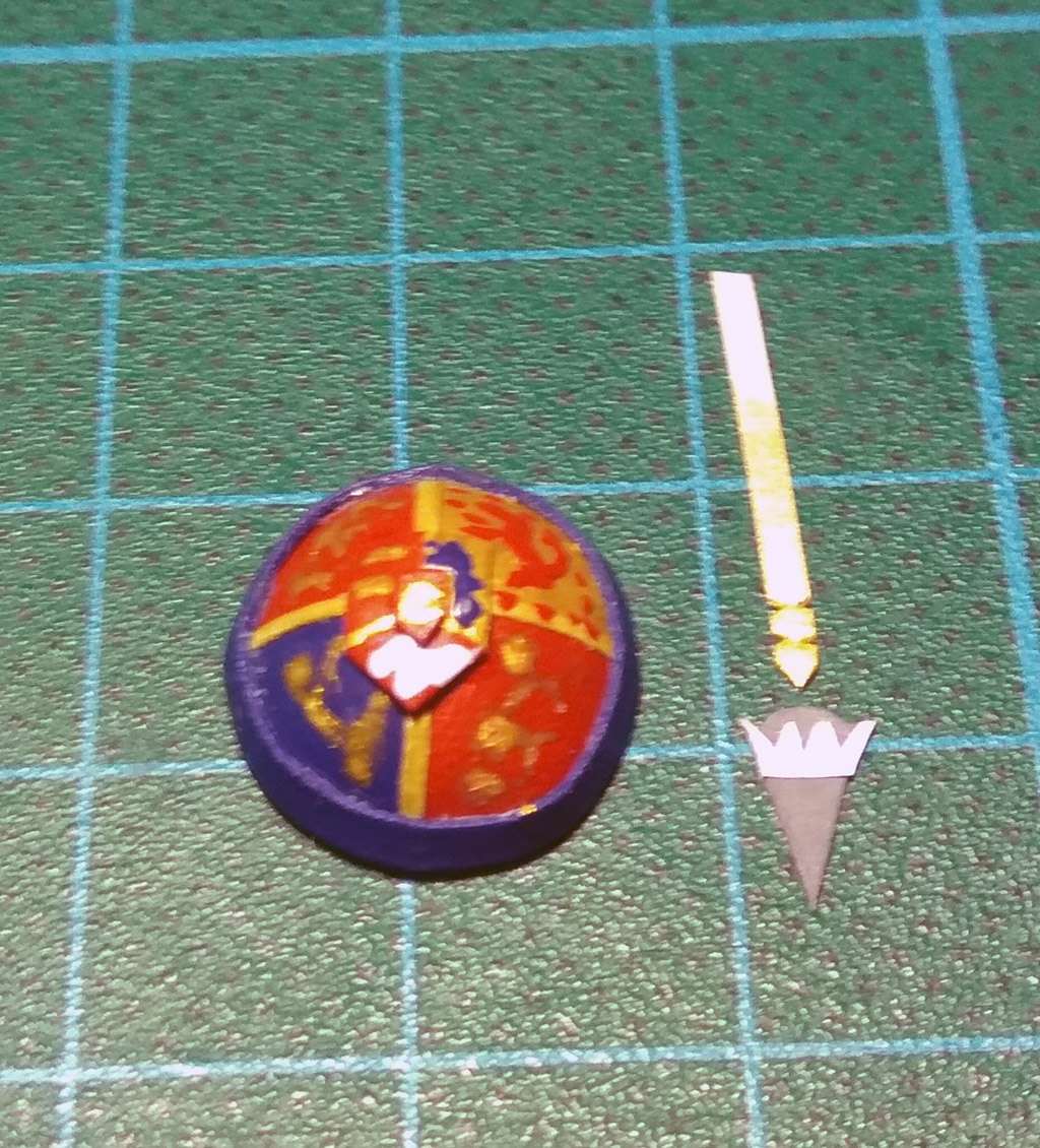 Teraz malowanie lwów i innych ornamentów. Te elementy są tak małe, że nie pokusiłem się o wycinanie ich z papieru tylko malowałem z ręki. Przygotowałem również elementy korony z papieru