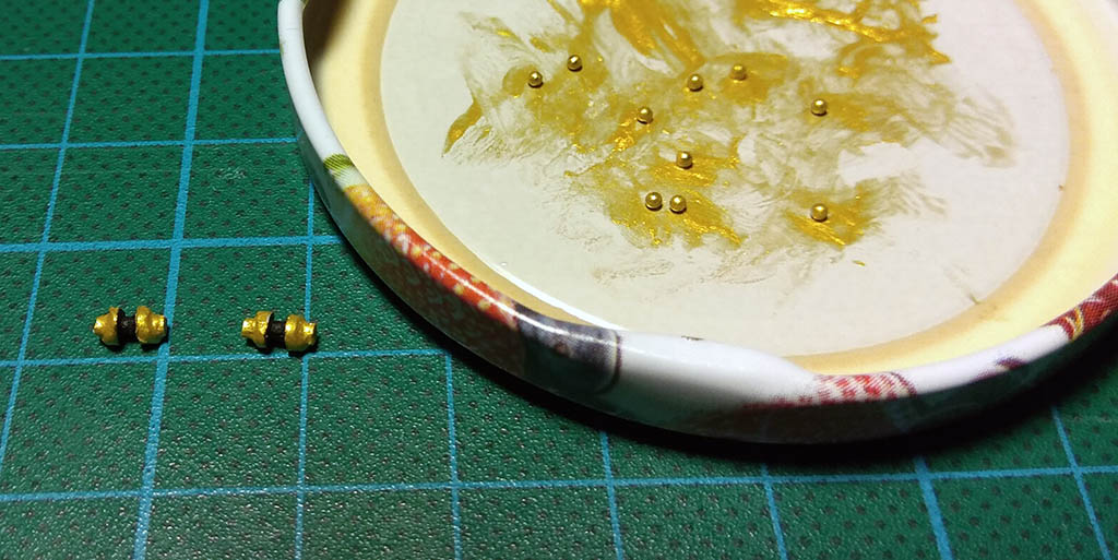 Przykleiłem ślimaki do tarczy i w międzyczasie pomalowałem kulki stalowe potrzebne do umieszczenia na ślimaku
