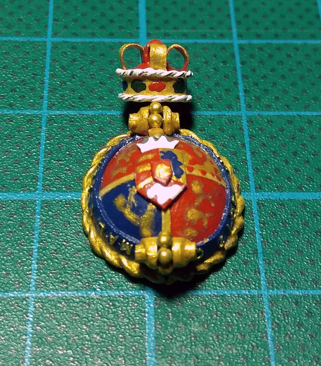 I dewiza korony angielskiej na szarfie: DIEU ET MON DROIT (fr. Bóg i moje prawo). Napis zrobiłem z literek Abera 1,5mm