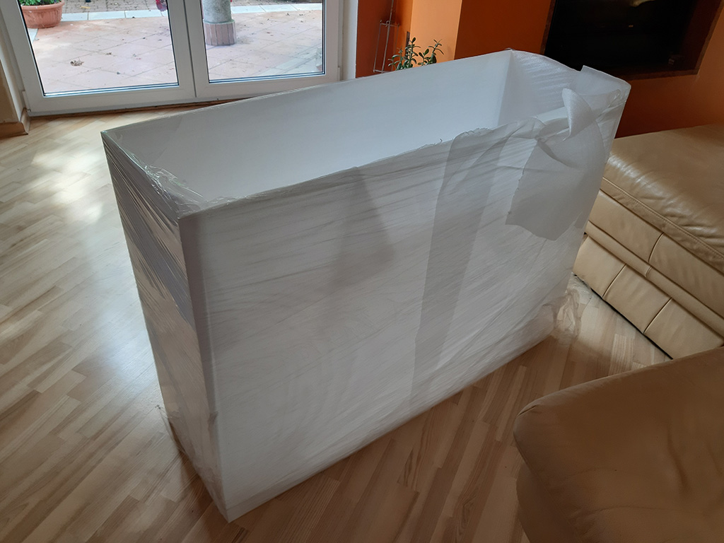 Zapłaciłem za nią 550zł. Cena plexi 4mm od producenta to 398zł (149 zł/m2). Więc cena robocizny to 152zł. Można by było kleić samemu, ale są to wielkie powierzchnie i sam bym nie wygiął plexi na długich brzegach. Dodatkowo musiałbym zapłacić za odpad plexi, więc cena materiału byłaby jeszcze wyższa.
