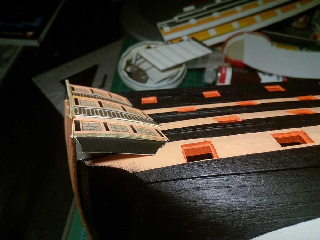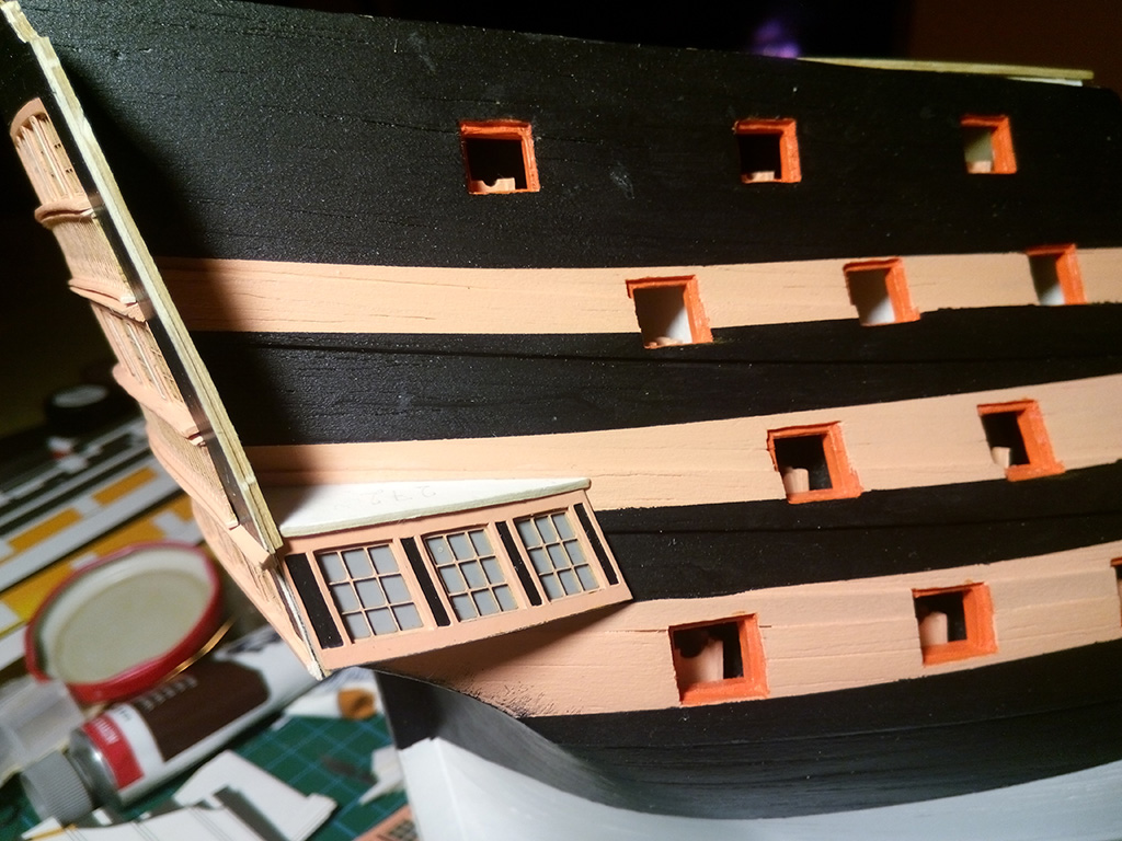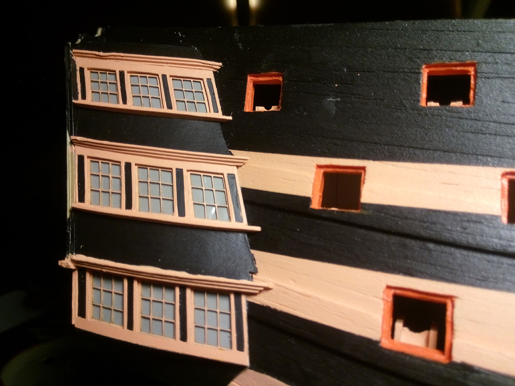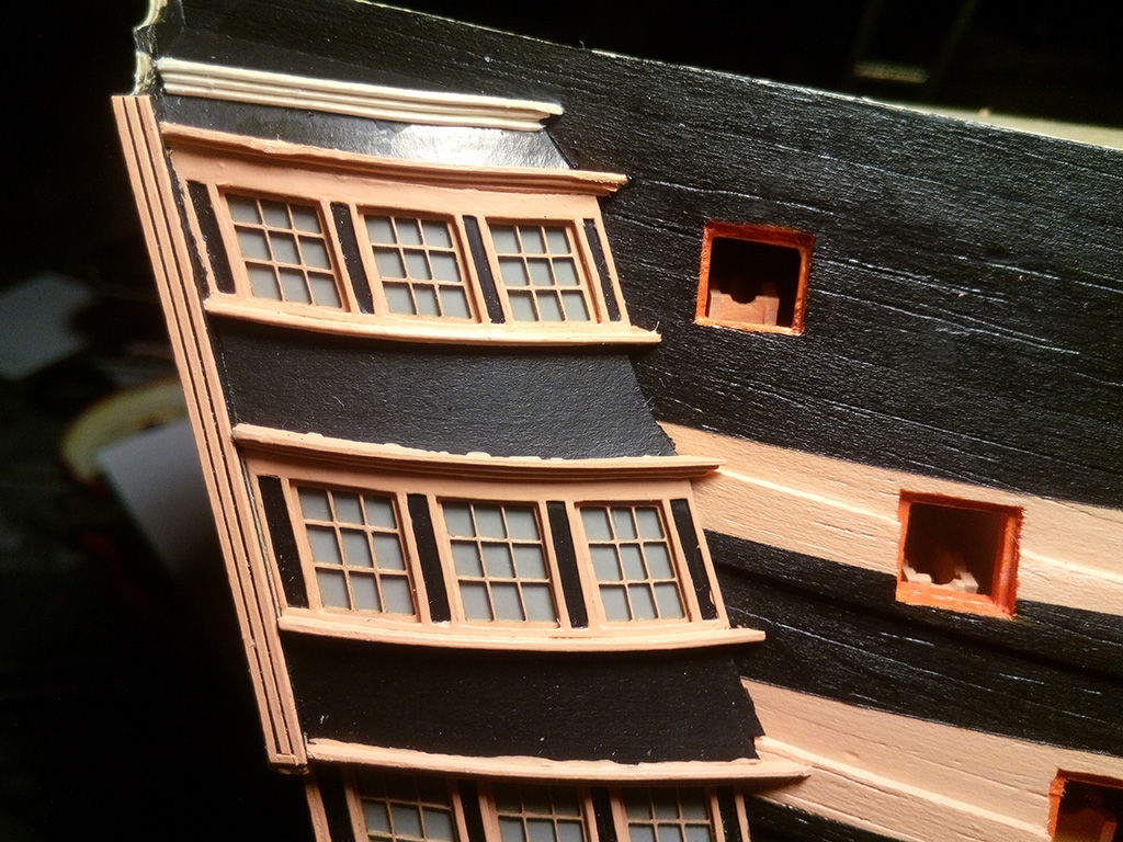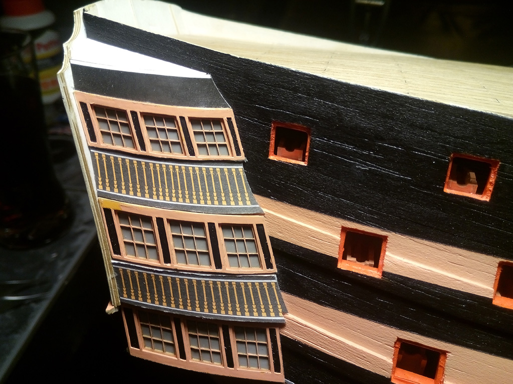 Kolej na galerie boczne na rufie, na początek okienka