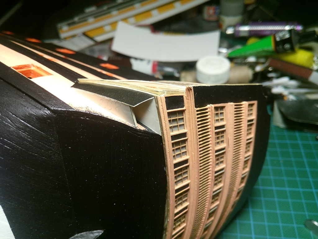 Walczymy z galeriami bocznymi, najtrudniej przykleić pierwsze dwie wręgi, bo skosy są wszędzie...