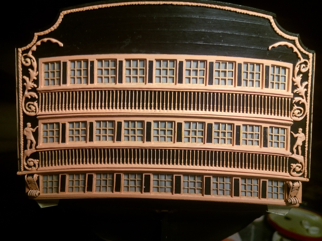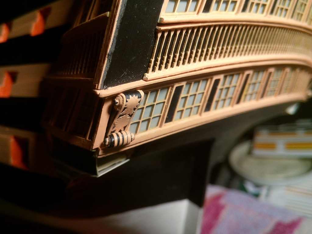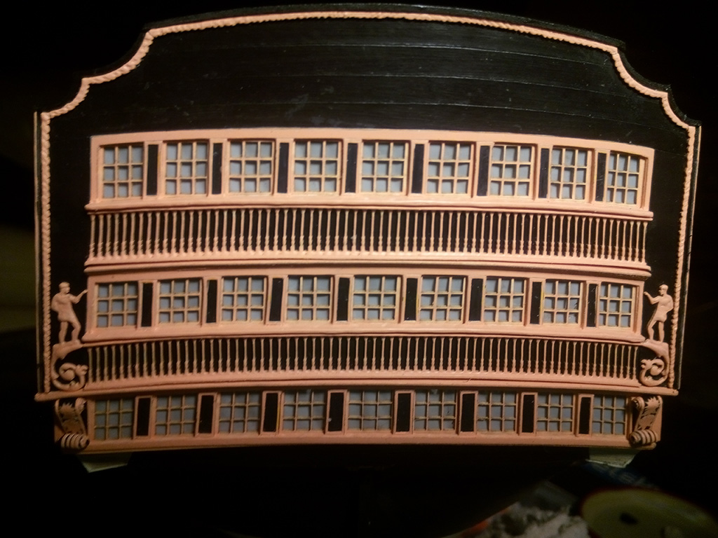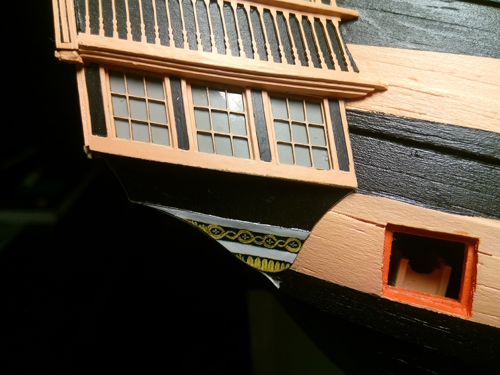Teraz walka z ornamentami na lustrze rufy. Wszystkie elementy uplastycznione wikolem