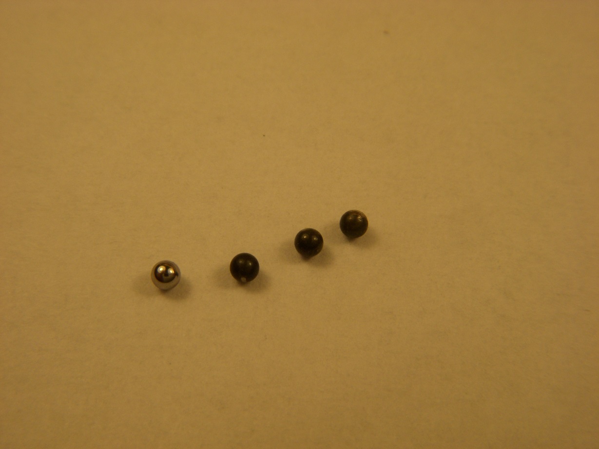 I jeszcze mam zaległą odpowiedź w temacie kul armatnich. Poniżej nie oksydowane i oksydowane (po wcześniejszym przeszlifowaniu). Zamieszczam też zdjęcie środka, którego użyłem. Sprawdzony w boju, działa.