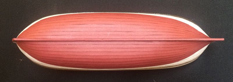 Po obejrzeniu wycinanki (zakupionej w Empiku) szybko zakupiłem na stronie WAK dodatki w postaci laserowo wycinanego szkieletu i żagli. Strzał w dziesiątkę (przynajmniej ze szkieletem) - samodzielne wycinanie dziesiątek części z kartonu 0,5 mm na 100% skończyłoby się tragicznie (albo dla modelu albo dla moich "paluszków"). Korzystając z "gotowca" już po 2 czy 3 godzinach (sic!) miałem gotowy i co najważniejsze całkiem symetryczny szkielecik