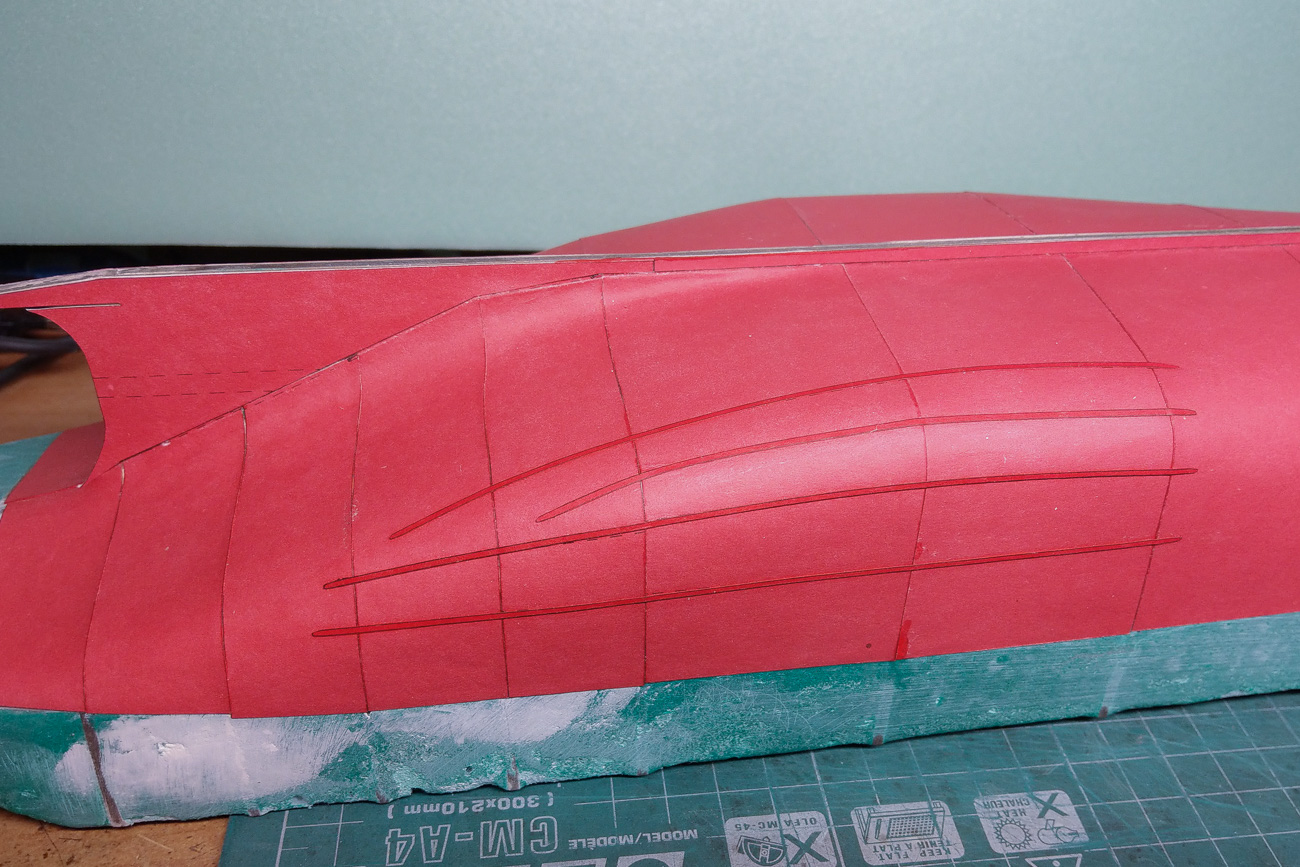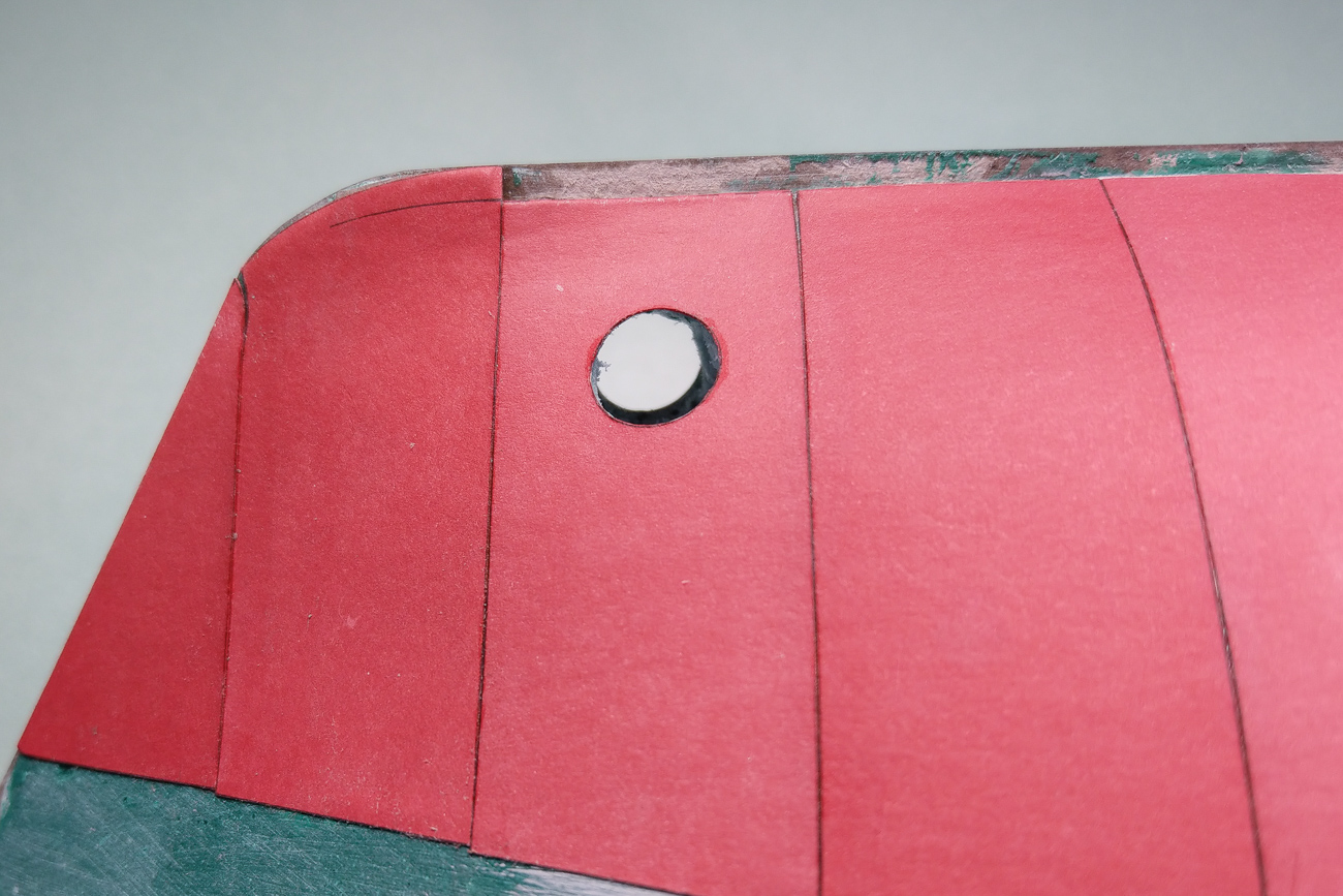 Dno oklejone przyzwoicie, jednak najbardziej rażą te różnice odcieni poszczególnych oklejek. Zastanowił bym się nad malowaniem, lub zerwaniem tego poszycia i wykonania nowego z kartonu barwionego w masie. Odpada retusz, i można pasować oklejki do bólu.