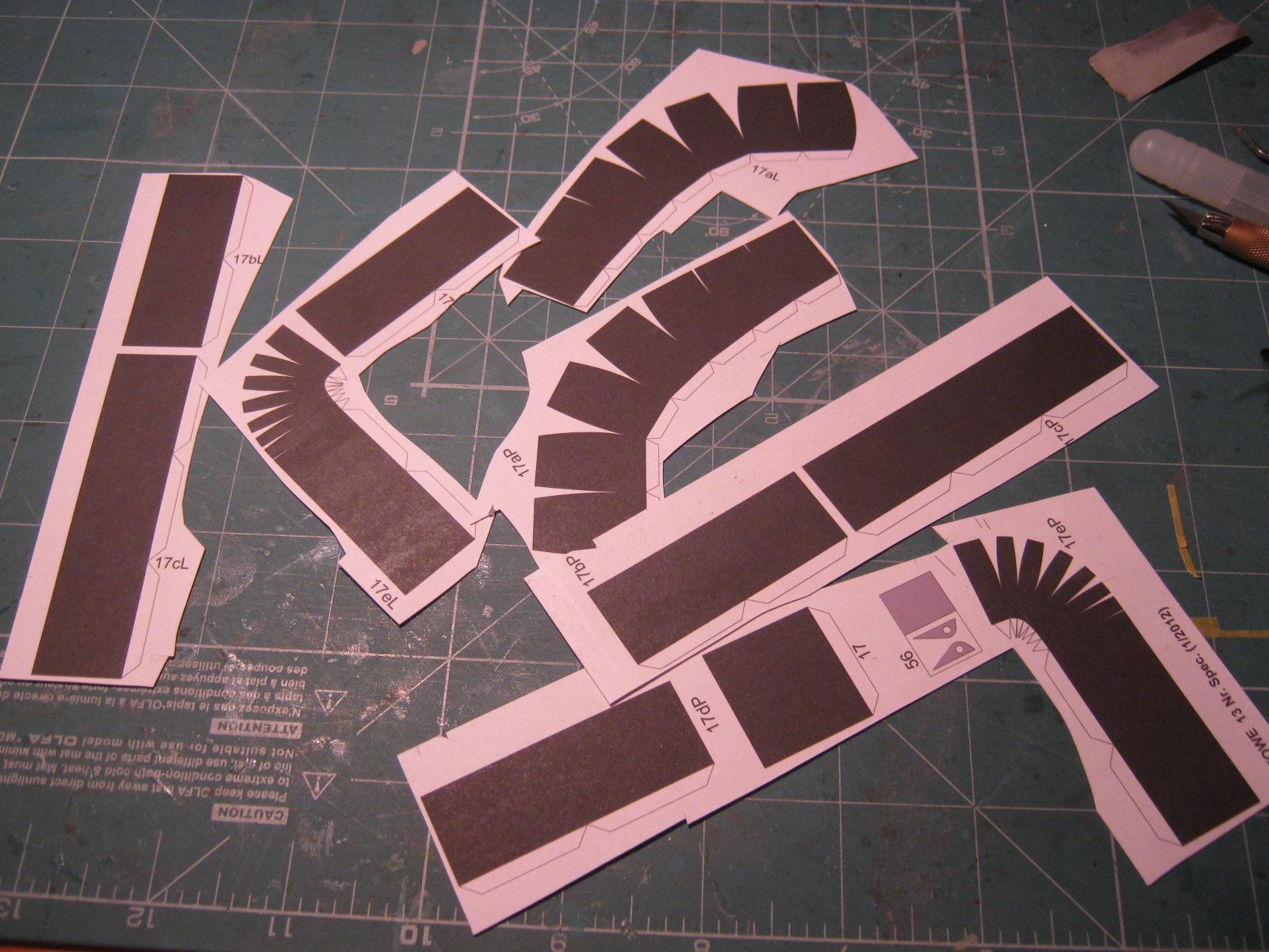 Przy robieniu samych poduszek zbytnio się nie starałem bo i tak wiedziałem że będę szpachlował (chociaż podziwiam autora modelu że tak ładnie mu te poduszki wyszły bez szpachli). Później stwierdziłem, że aż przesadziłem z niestaraniem się i trochę kasztany wyszły. Nie mogłem uformować kartonu na krzywiznach. Dopiero później doszedłem do wniosku że mogłem wszystkie zgięcia porozcinać, uformować, posklejać w całość i poszpachlować. Myślę, że tak byłoby łatwiej. Ale wydaje mi się, że jakoś wybrnąłem przez nałożenie dużej ilości cyjanoakrylu, posiłkowanie się dużą ilością papieru ściernego i nakładaniem szpachlówki kilogramami :lol: