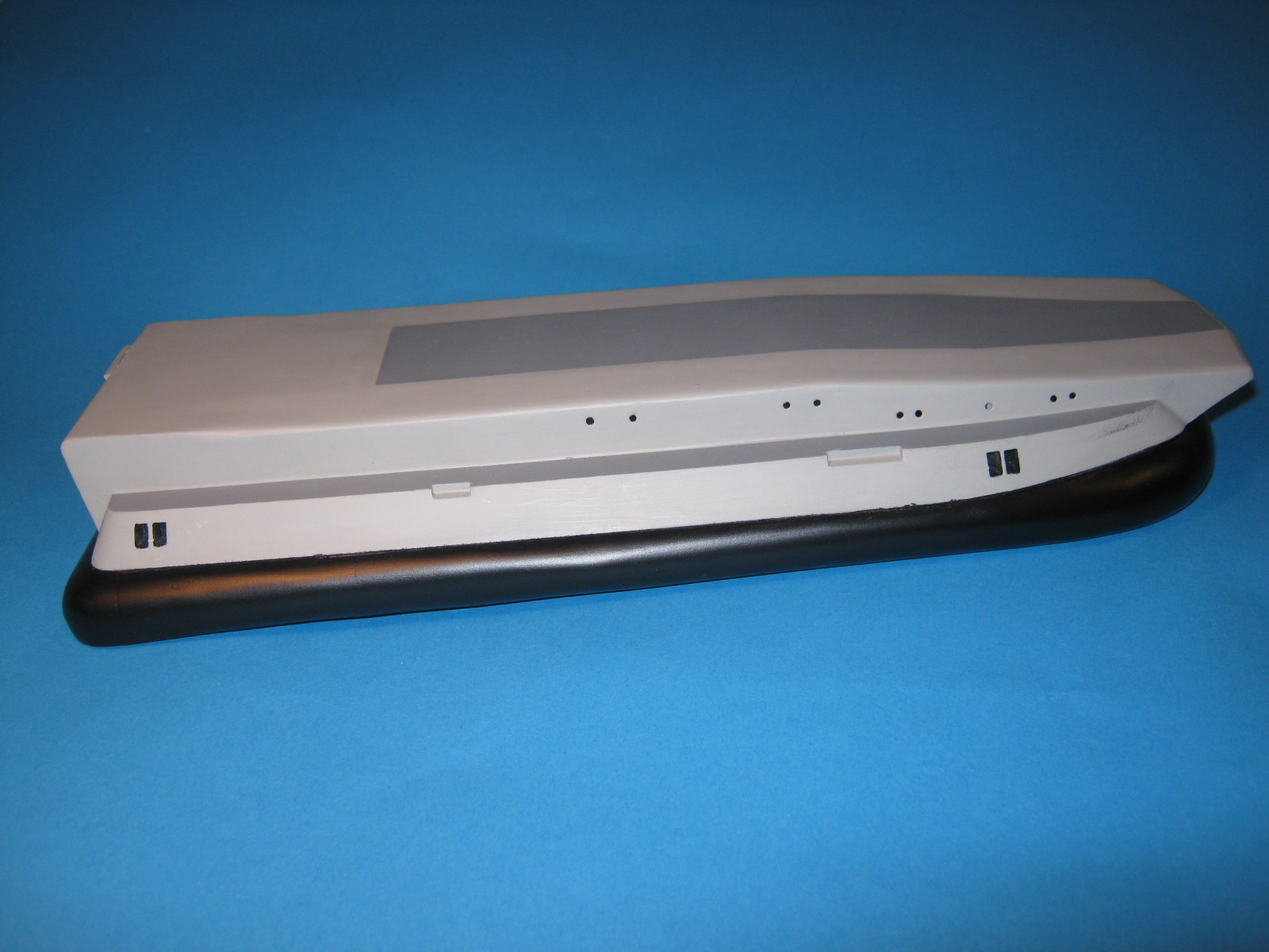 Zabrałem się również za "lekkie" brudzenie. Zamysłem moim jest aby porobić rdzawo-brudne zacieki. Robię to pierwszy raz i chyba troszkę przeszarżowałem z nadbudówką (chociaż jak był u mnie kolega co pływa na trałowcu to twierdzi, że po dłuższych rejsach ruda wychodzi z każdego możliwego elementu i ta moja nadbudówka wg niego wygląda stosunkowo realistycznie). Jak dla mnie to te zacieki są zbyt "ordynarne" ale takie już zostaną bo całość jest już polakierowana. Wydaje mi się, że zacieknięte silniki wyszły lepiej. Ładniej to wygląda gołym okiem niż na zdjęciach. Zresztą jak się ogarnę to w Tczewie tego kasztana będzie można zwodować do Wisły jak się Wam nie spodoba. Ogólnie to chciałem się tylko pobawić w brudzenie a z modelem raczej mistrzostwa polski nie zdobędę. Nie przypuszczałem również, że w moim modelarskim wyposażeniu znajdą się farby olejne dla plastyków, jakieś śmierdzące rozpuszczalniki white spiryt i płyn do podłóg Sidolux - Quo Vadis Lipa...
