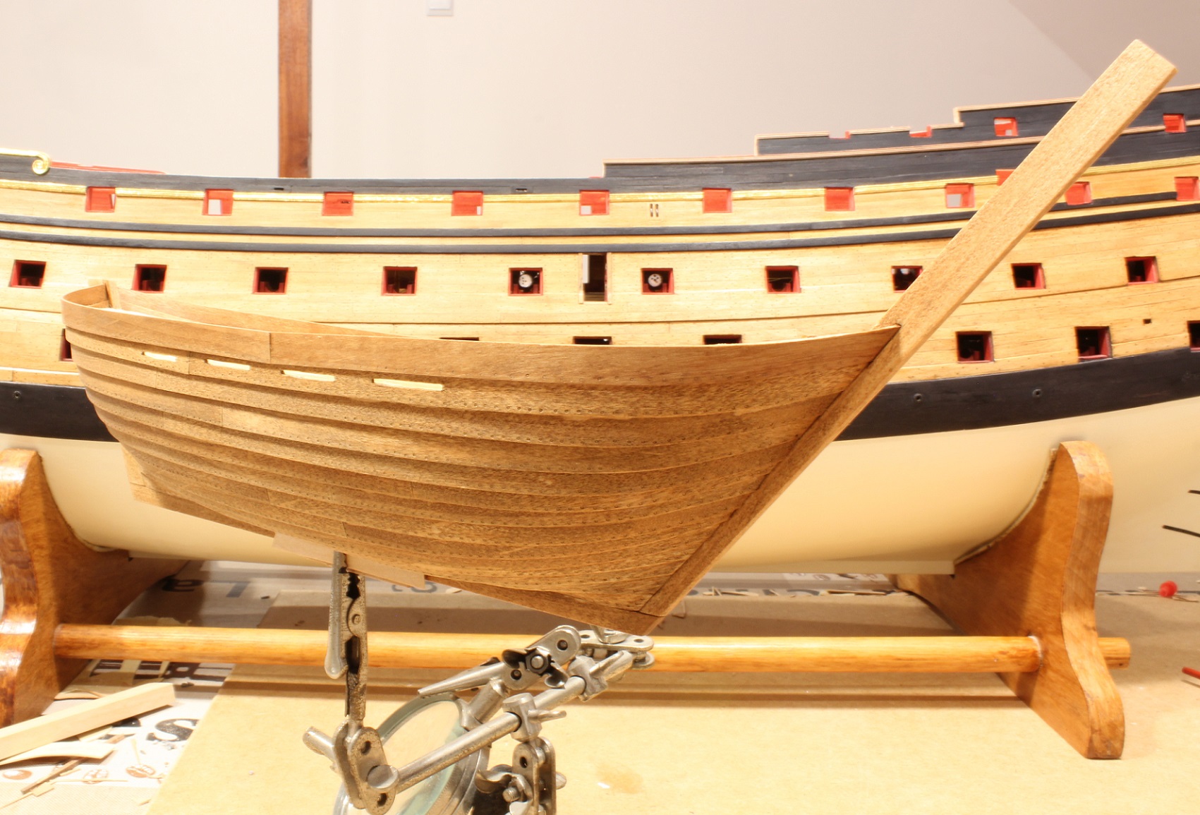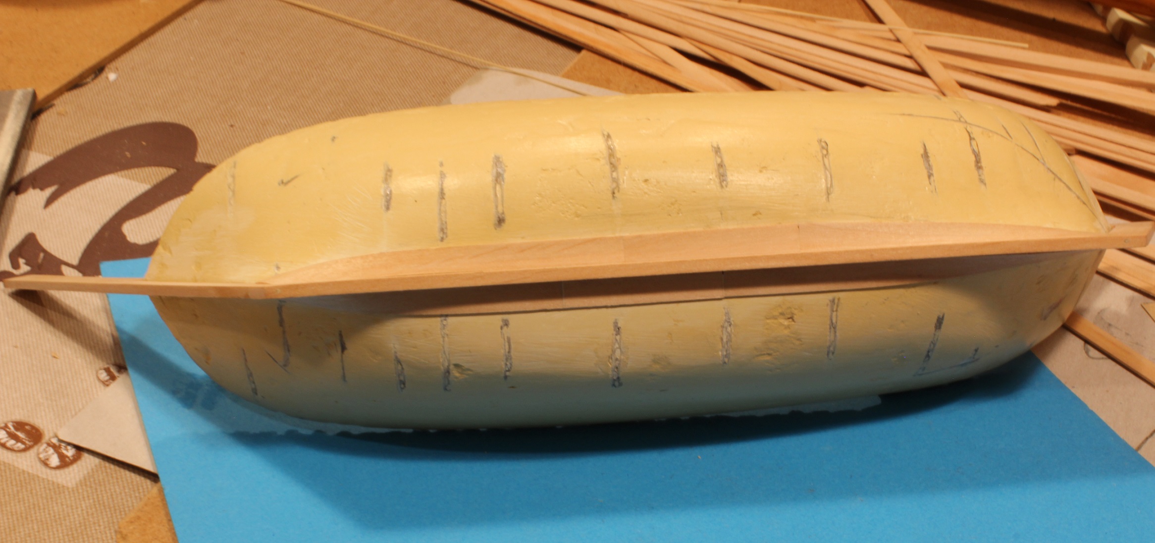 Przybywa mi na kodze. Przy tej skali to mam wrażenie, że dużą szalupę buduję. Po sześc planek na obu burtach mam
