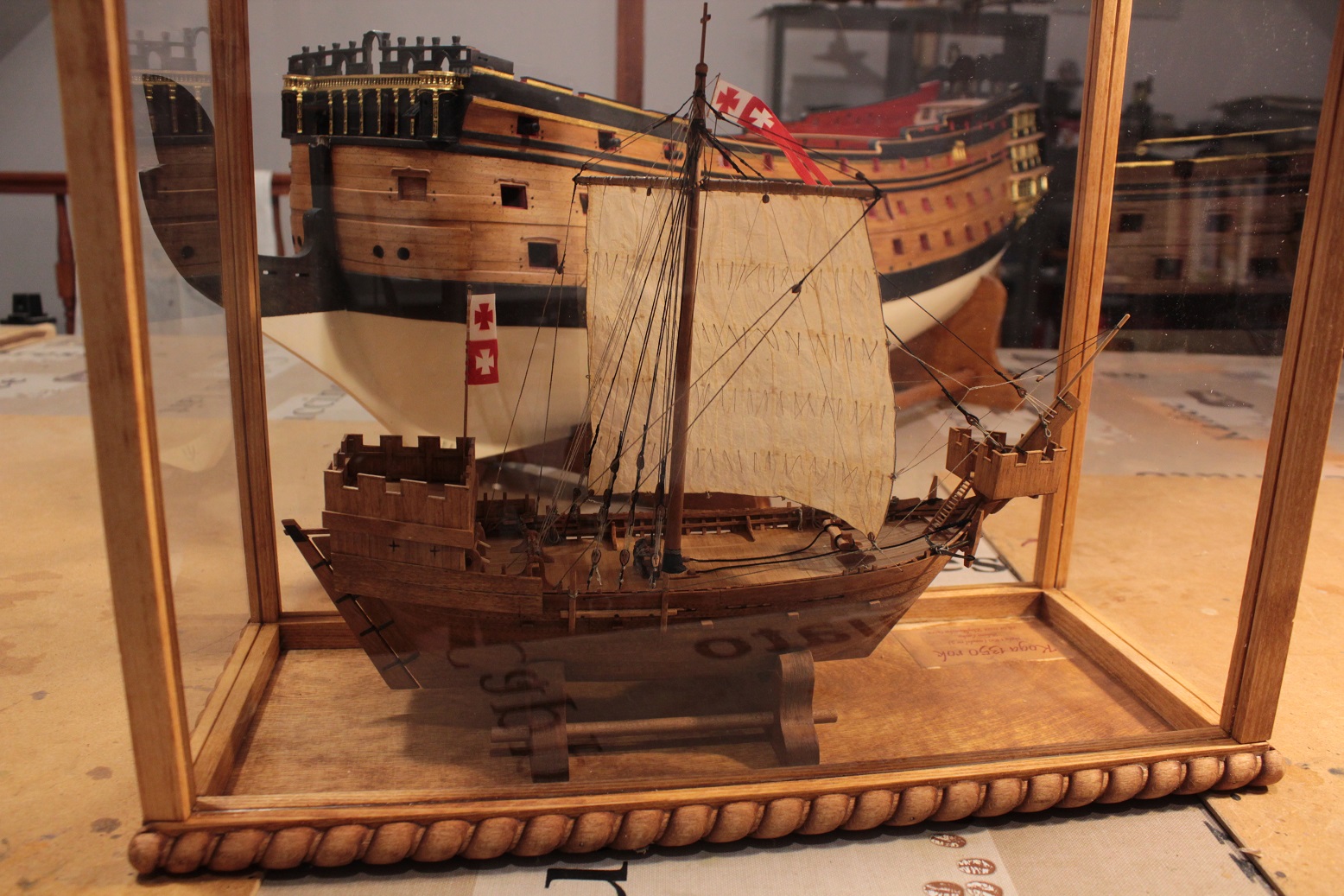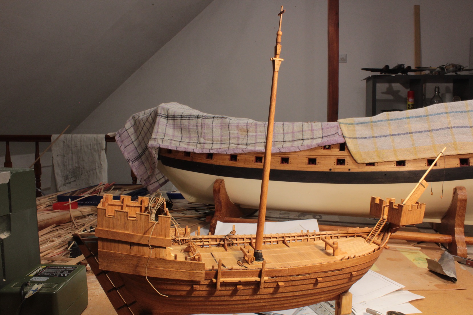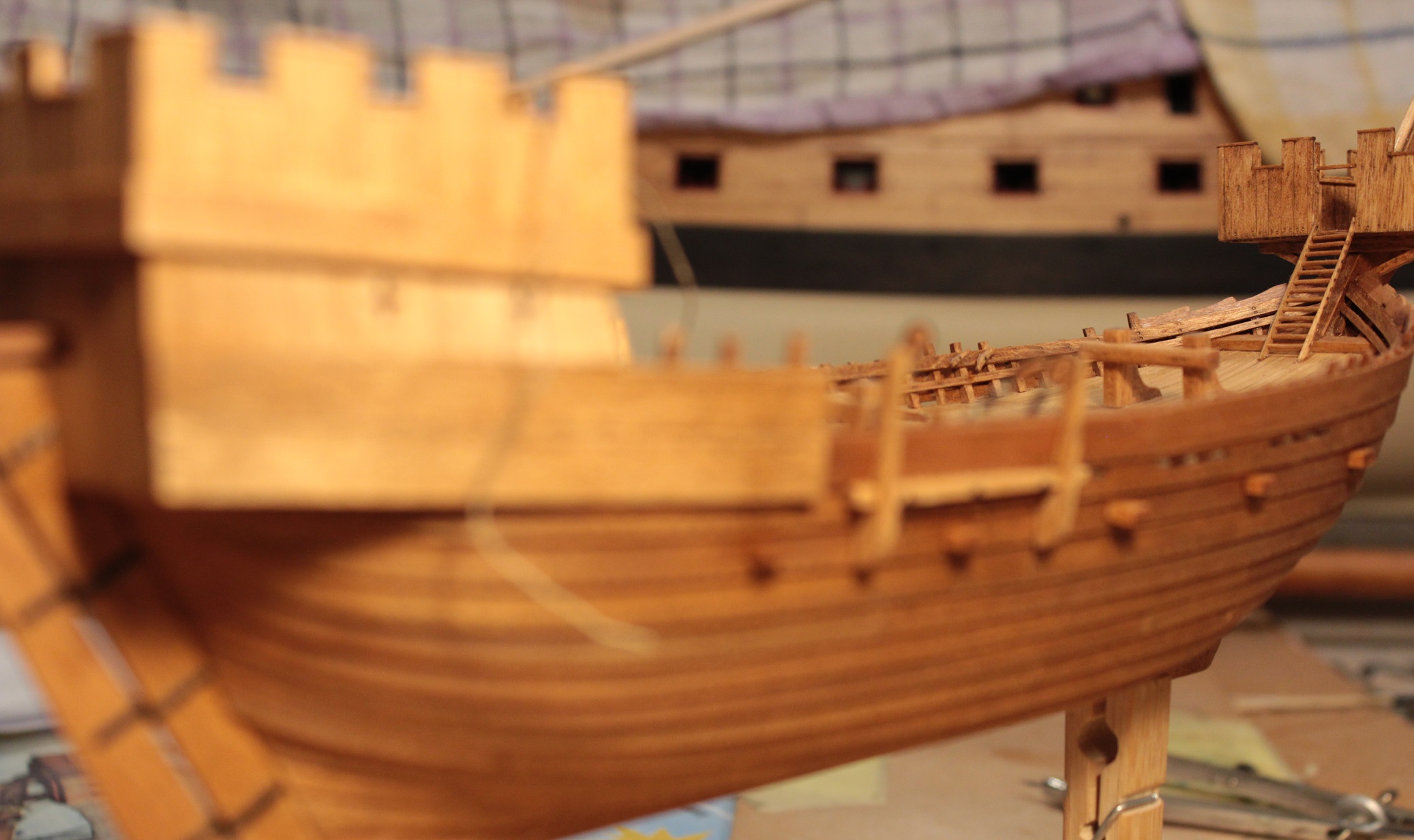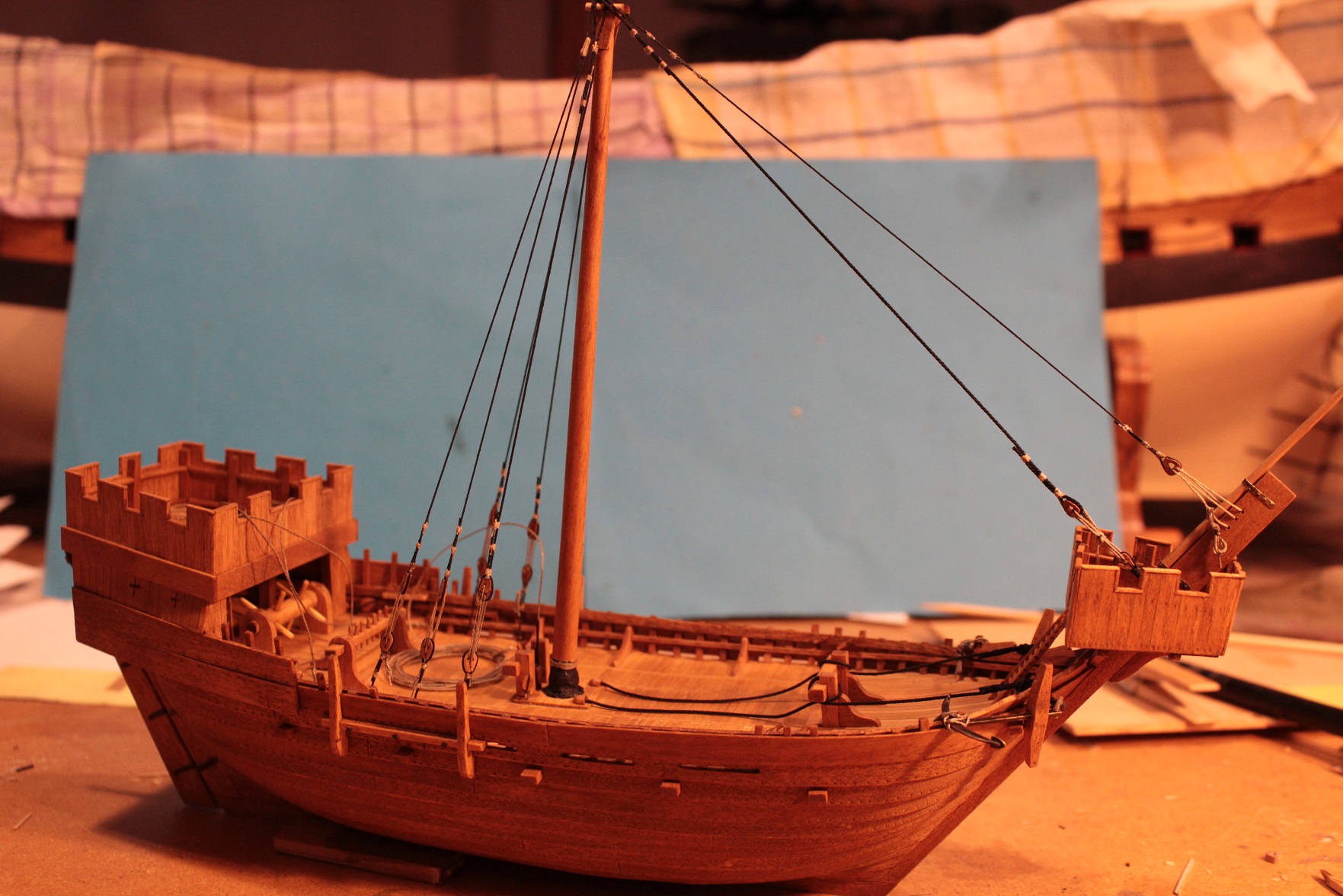 Miałem zasiąść do dłubania przy RW, ale jakoś znów przy kodze jestem. Cepelii ciąg dalszy, prawie widać koniec. Ze standardowego wyposażenia pokładu brakuje kotwic. Zostaje maszt, takielunek, flagi, podstawka i gablotka. Stan kogi na dziś