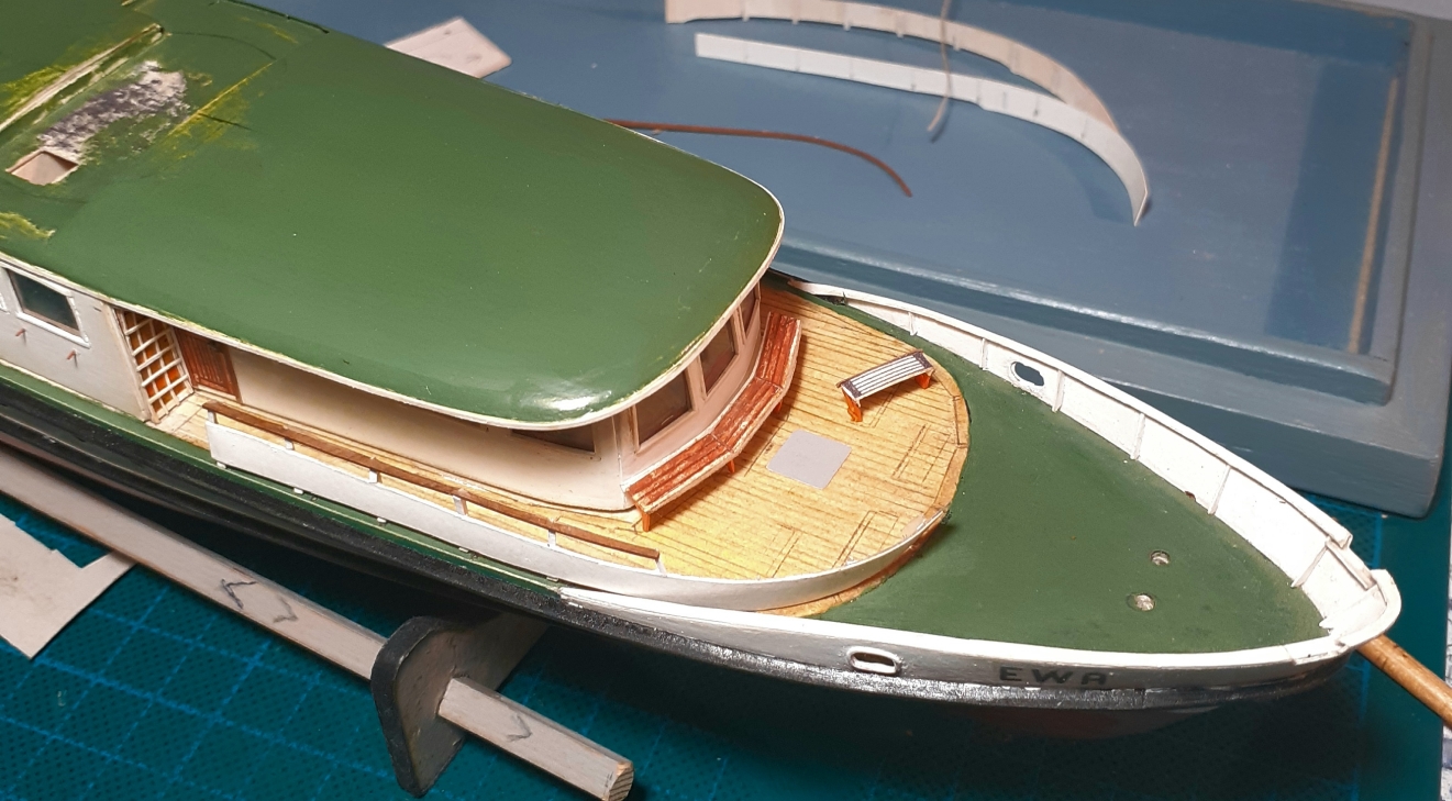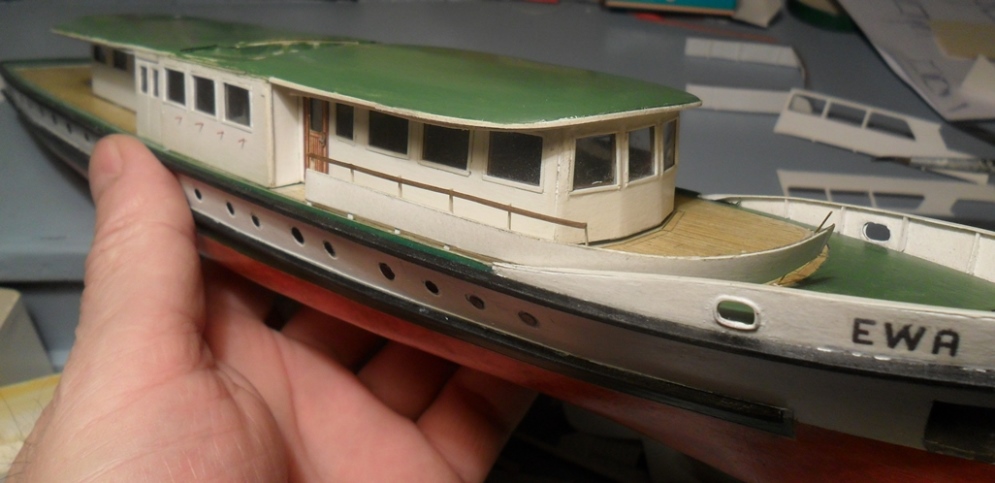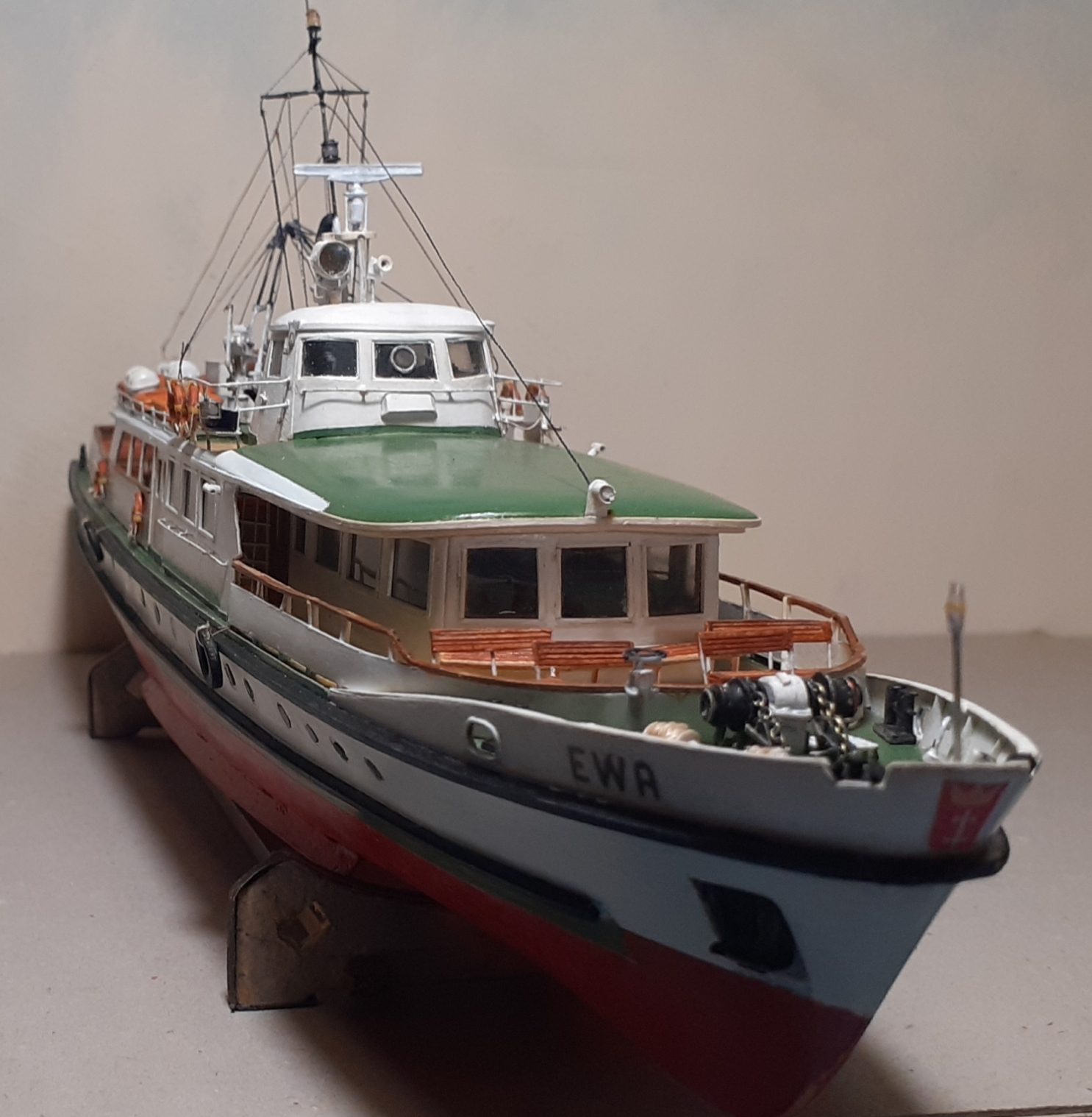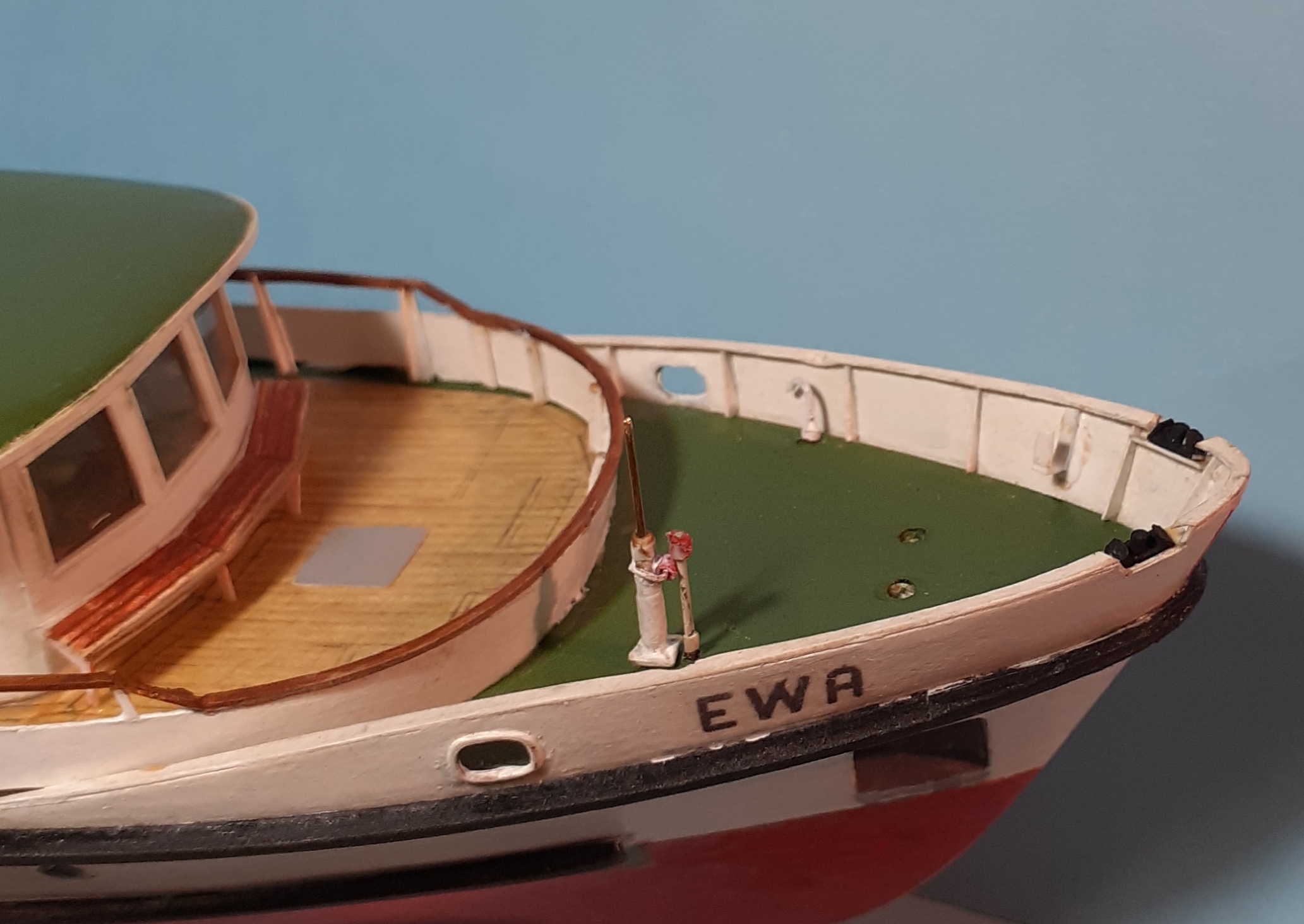 Witam, wykonałem stępkę przeciwpochyłową na podstawie zdjęcia jednostki na slipingu ,w końcu udało się wpasować i wkleić barierę przedniego pokładu widokowego ,pozdrawiam Marek