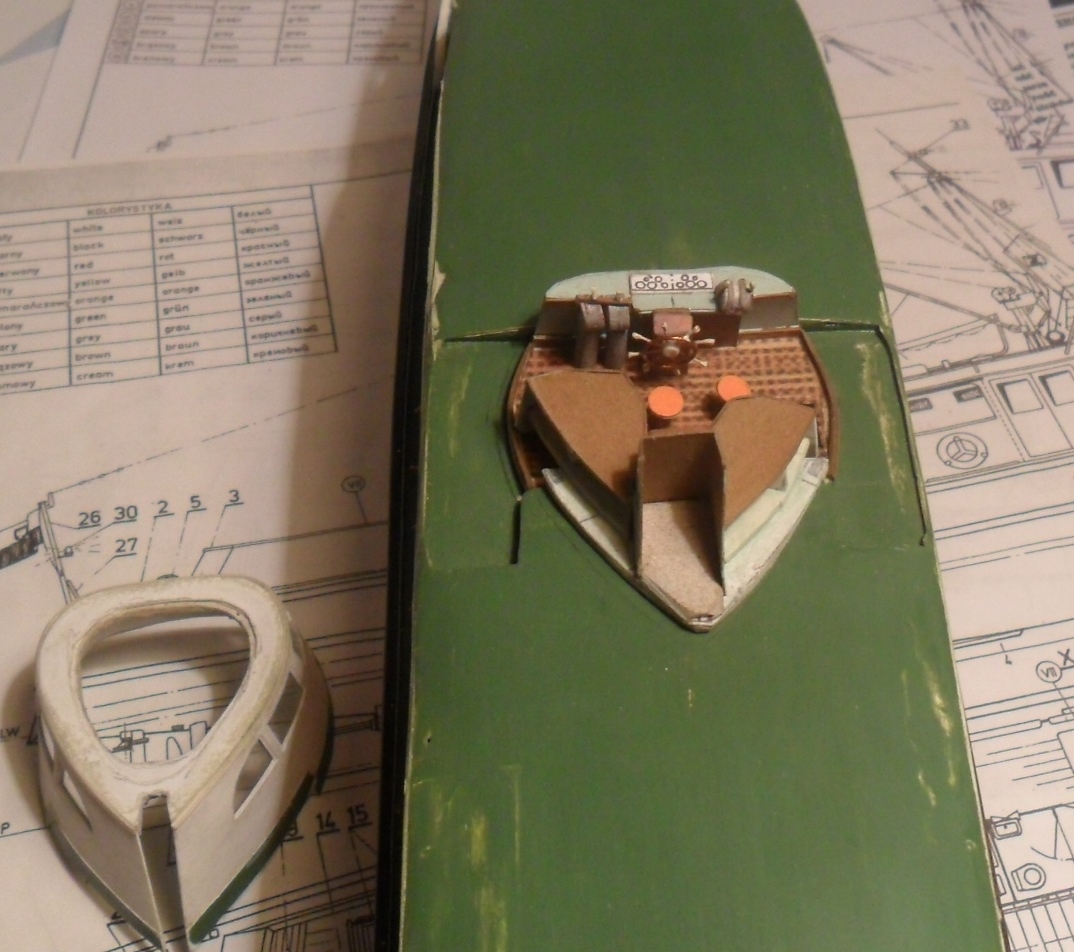 Witam,udało się zespolić nadbudówkę z kadłubem,powstwł pomost pod radar,nie ma na planie ,jeszcze nie wiem jak wyglądał ,ale coś sie wyszuka,połączyłem przednią nadbudówkę z przednim tarasem ,pozdrawiam Marek