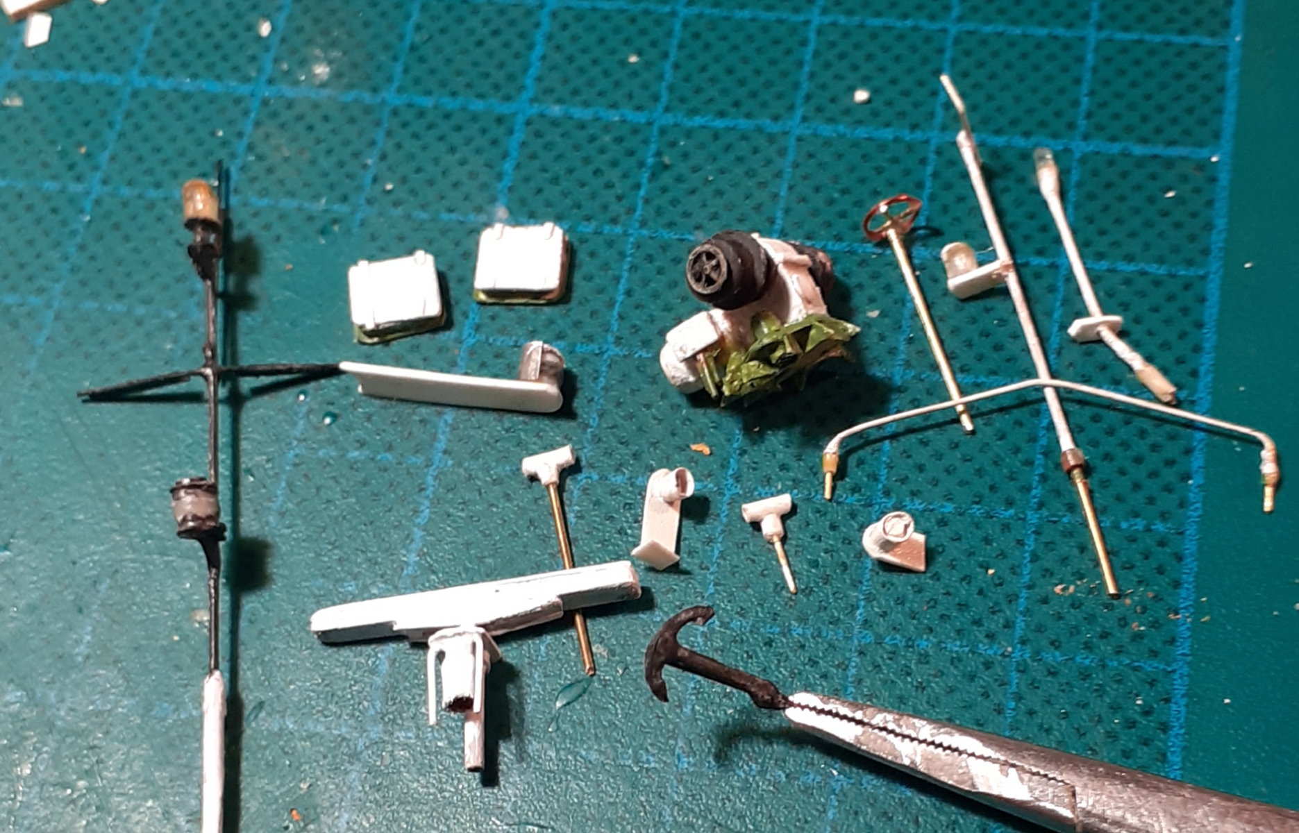 Witam,trochę czasu zajęło mi wykonanie :odpowietrzników ,wlewów na pokładzie ,do tego jest maszt,radar winda kotwiczna ,stopery, i wreszcie dzwigi łodziowe.Pozostało zespolenie sterówki z nadbudówką reling ,no lampki i montaż, pozdrawiam Marek